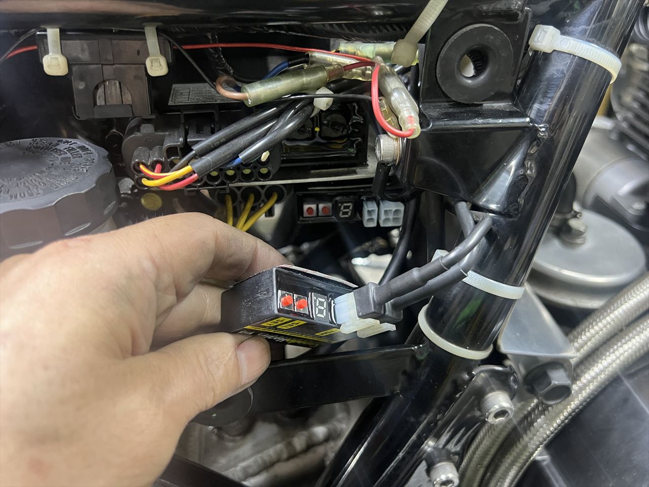 転倒前から不調だったスピードメーターは、ユニット交換で復活しました。最近、このユニットトラブルが多く、交換する事例が多いのですが、私のマシンのユニットは、取り付け以来数年サーキットを走り続けていますがノントラブルです。最近の製品の耐久性が低くなったのかもしれません。このユニットはHealTech Electronics製の SpeedoHealer(スピードヒーラー)というモデルで生産国はハンガリーです。