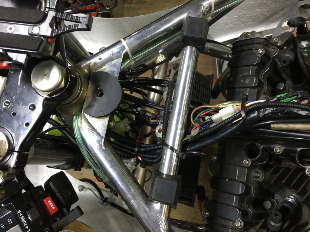 コイルとユニットは、ヘッドパイプの裏側のスペースにマウントします。