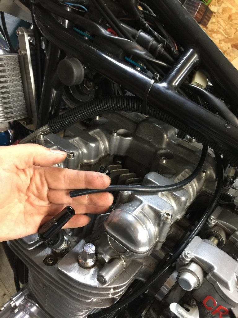 コードをキャップに接続して完成です。今度は2番3番のキャップが長いのでタンクを付けたままでも整備性がいいでしょう。