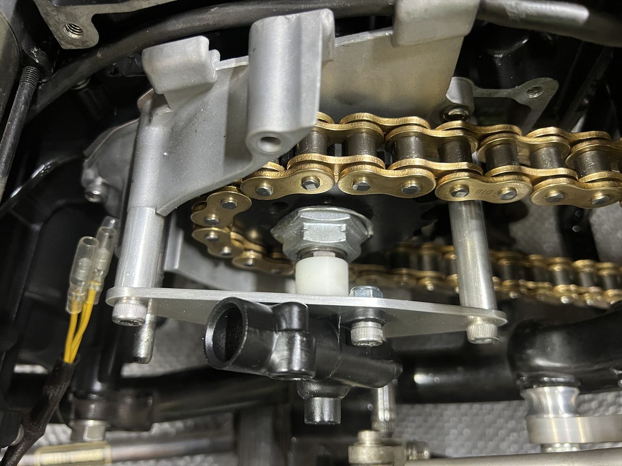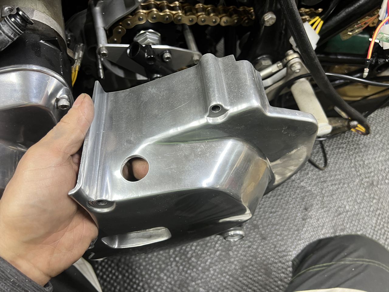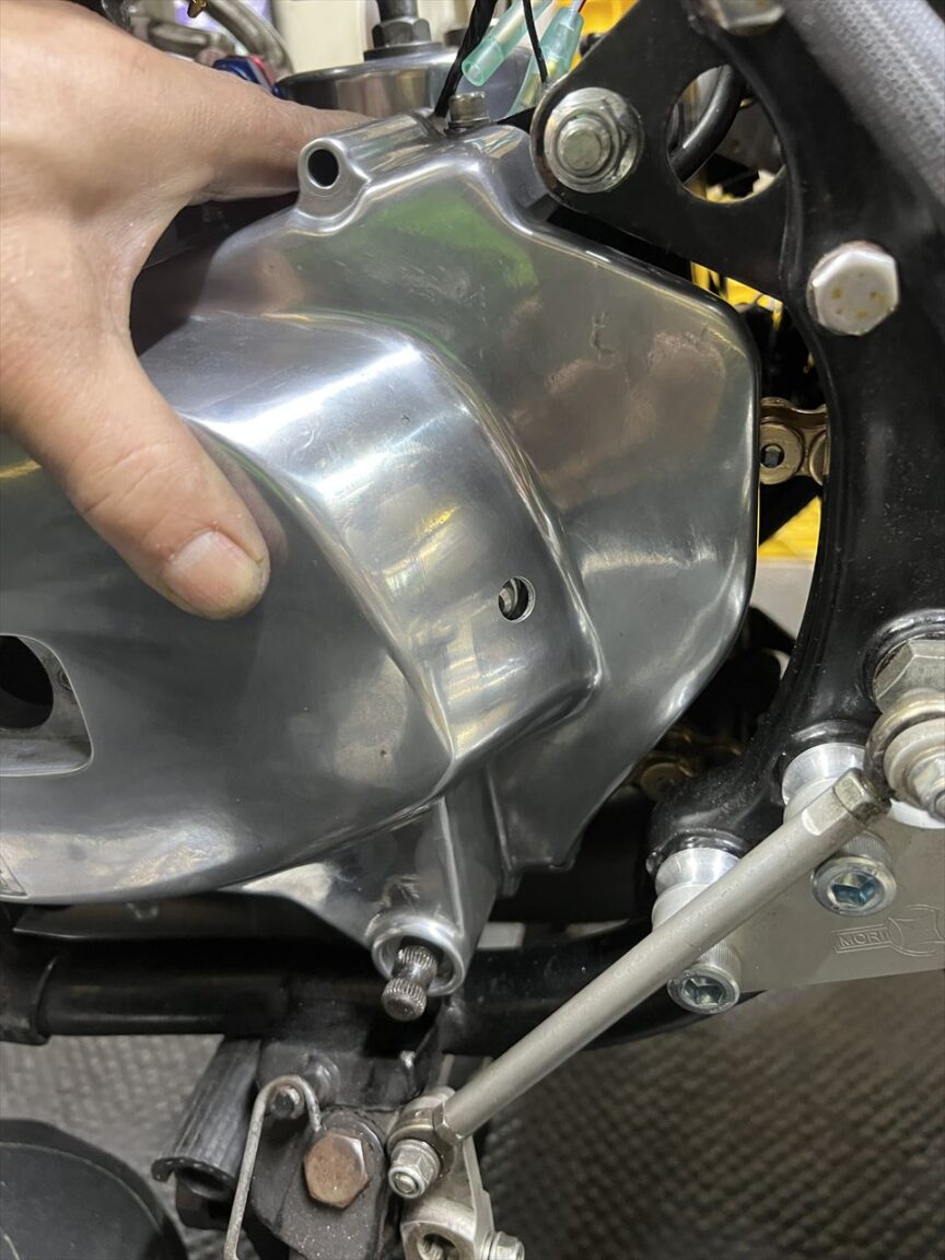 ギヤボックスブラケットの一部がスプロケカバーの裏側に干渉するので、小さな穴をあけて逃げとします。