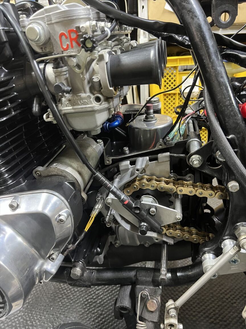 ブリーザーホースはコンパクトにまとめやすい90°ホースで下に出します。今日は時間切れでエンジン始動までできませんでしたが、明日は最終段階まで行けそうです。