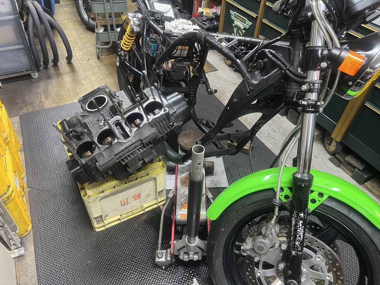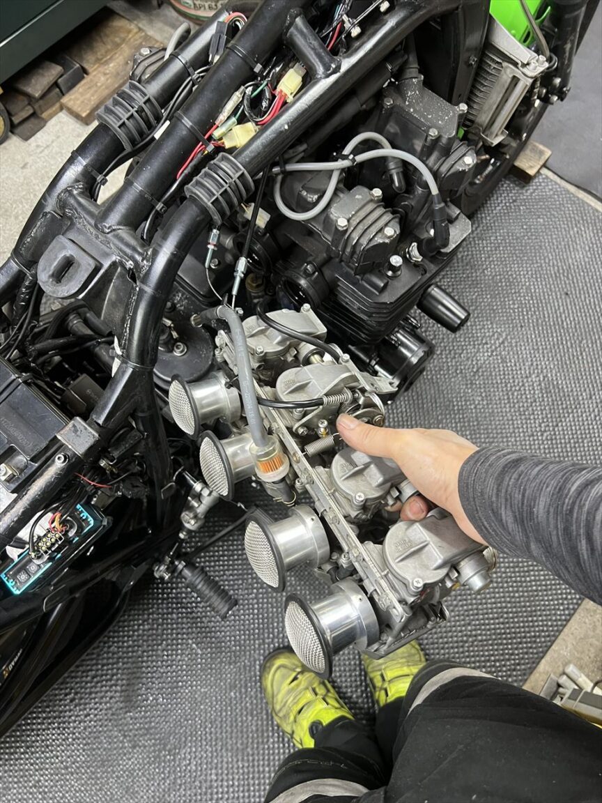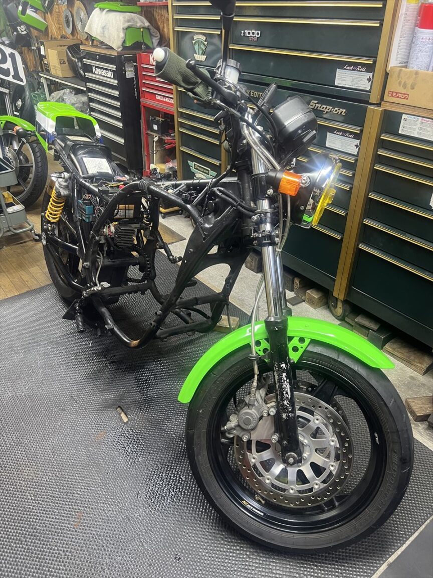 今回はエンジンオーバーホールとフレーム塗装が主な作業内容です。エンジン内部の仕様は車両入手時から不明とのことです。