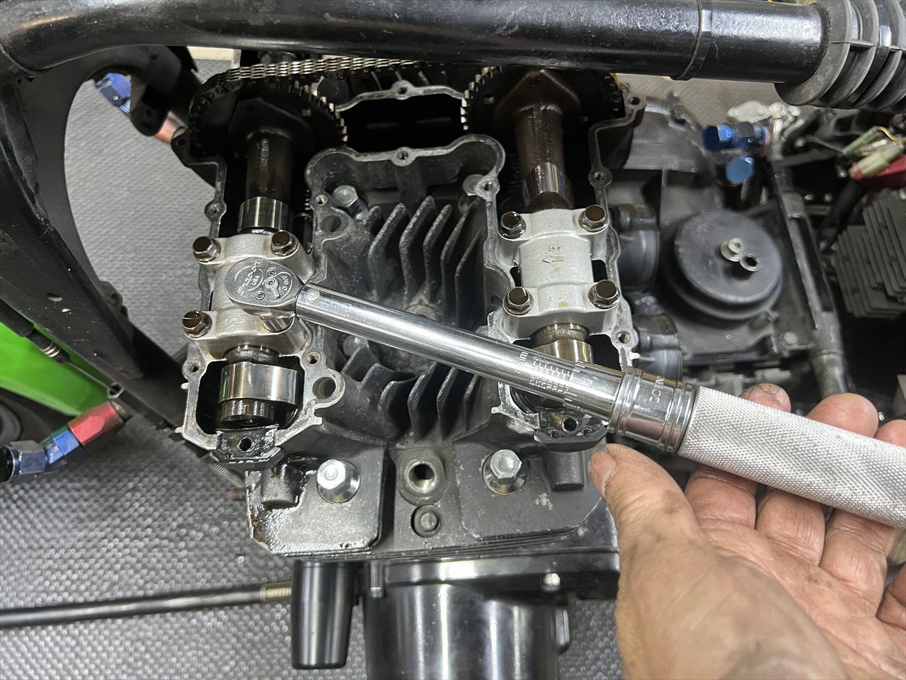 カムホルダーのトルクをチェックします。エキゾースト側はほぼ全滅です。