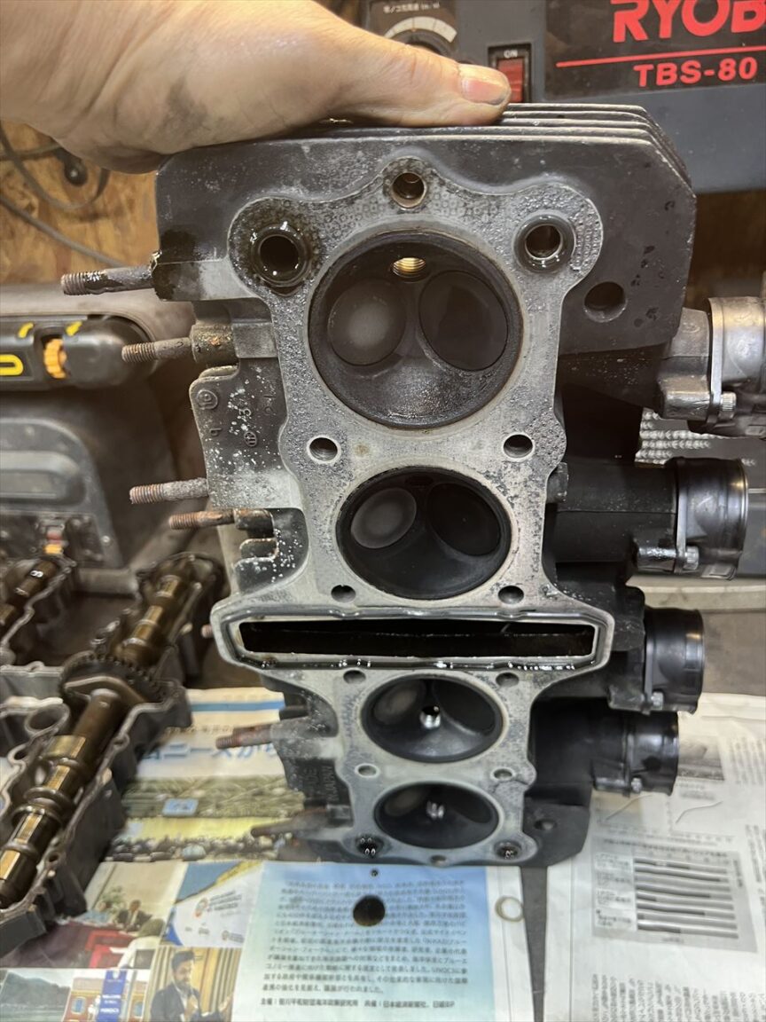 燃焼室はこんな感じ。面研は少ししてあるみたいですが、その他には大きな加工は無いようです。
