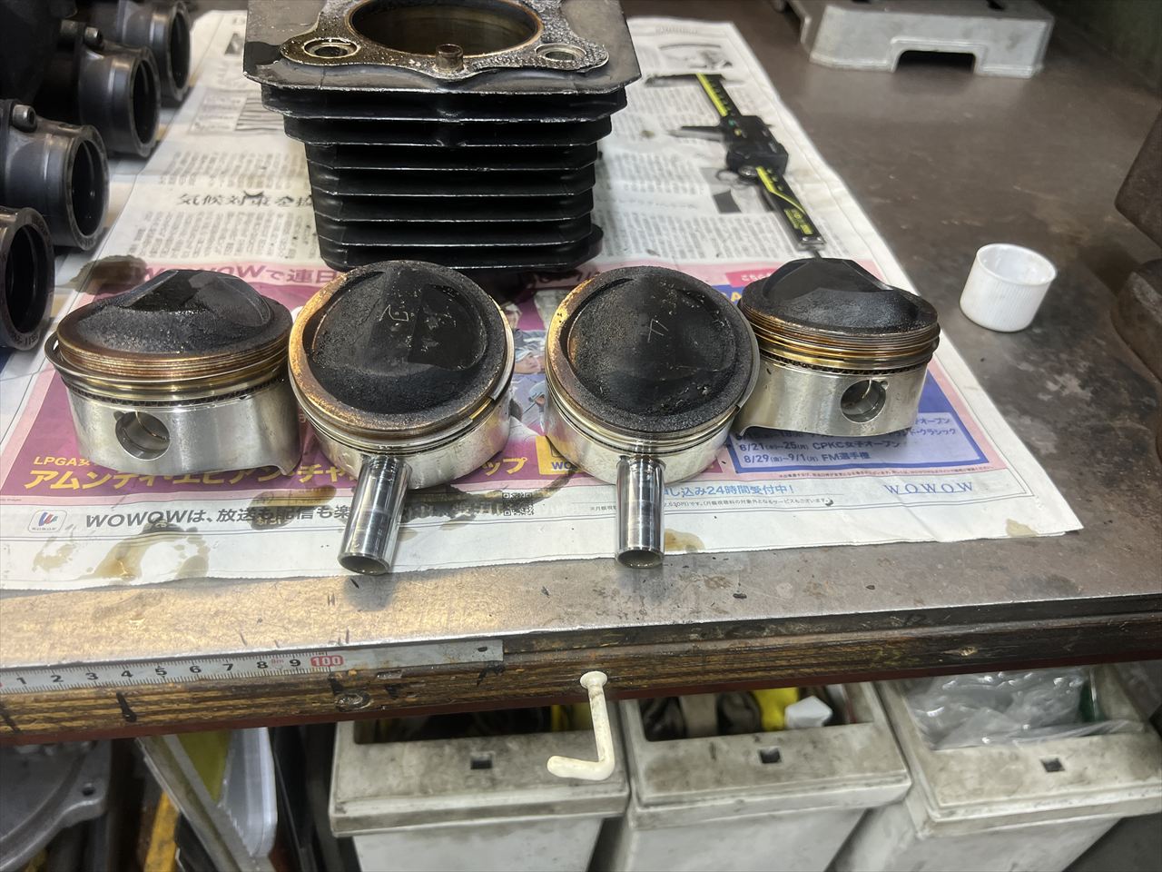 事前の予定ではピストンはノーマルで、ボアアップしてφ74ミリにする計画でした。少々計画を練り直さなければいけませんね。