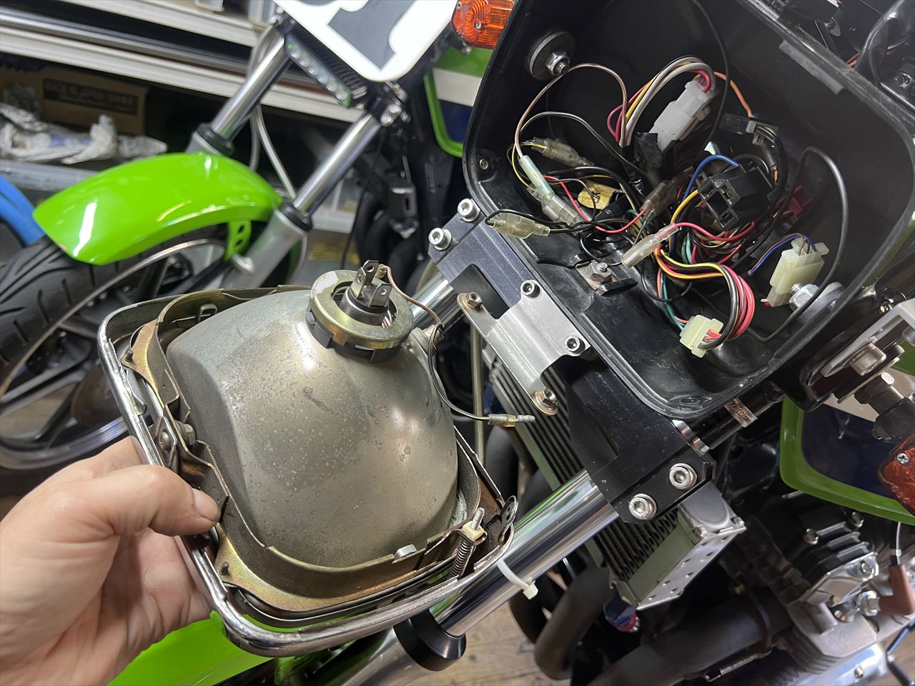 センサーの配線はヘッドライトケース内で接続されています。