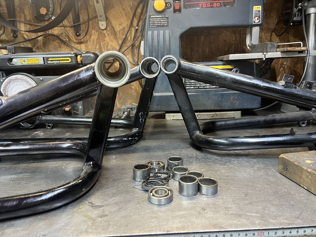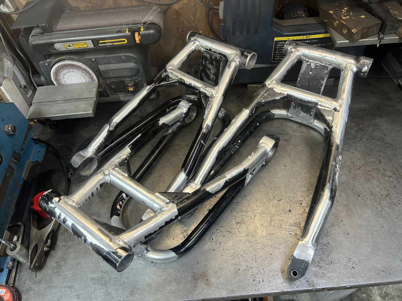 ZRX400純正スイングアームをベースに、S1タイプのスイングアームに改造します。今回はバックオーダー分も入れて3本まとめて作ります。