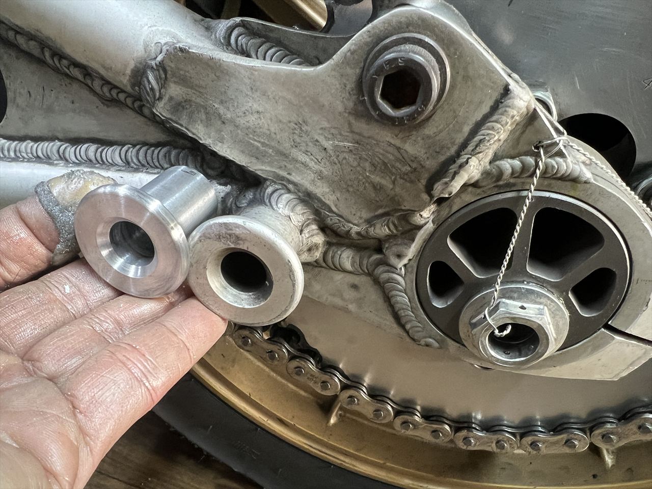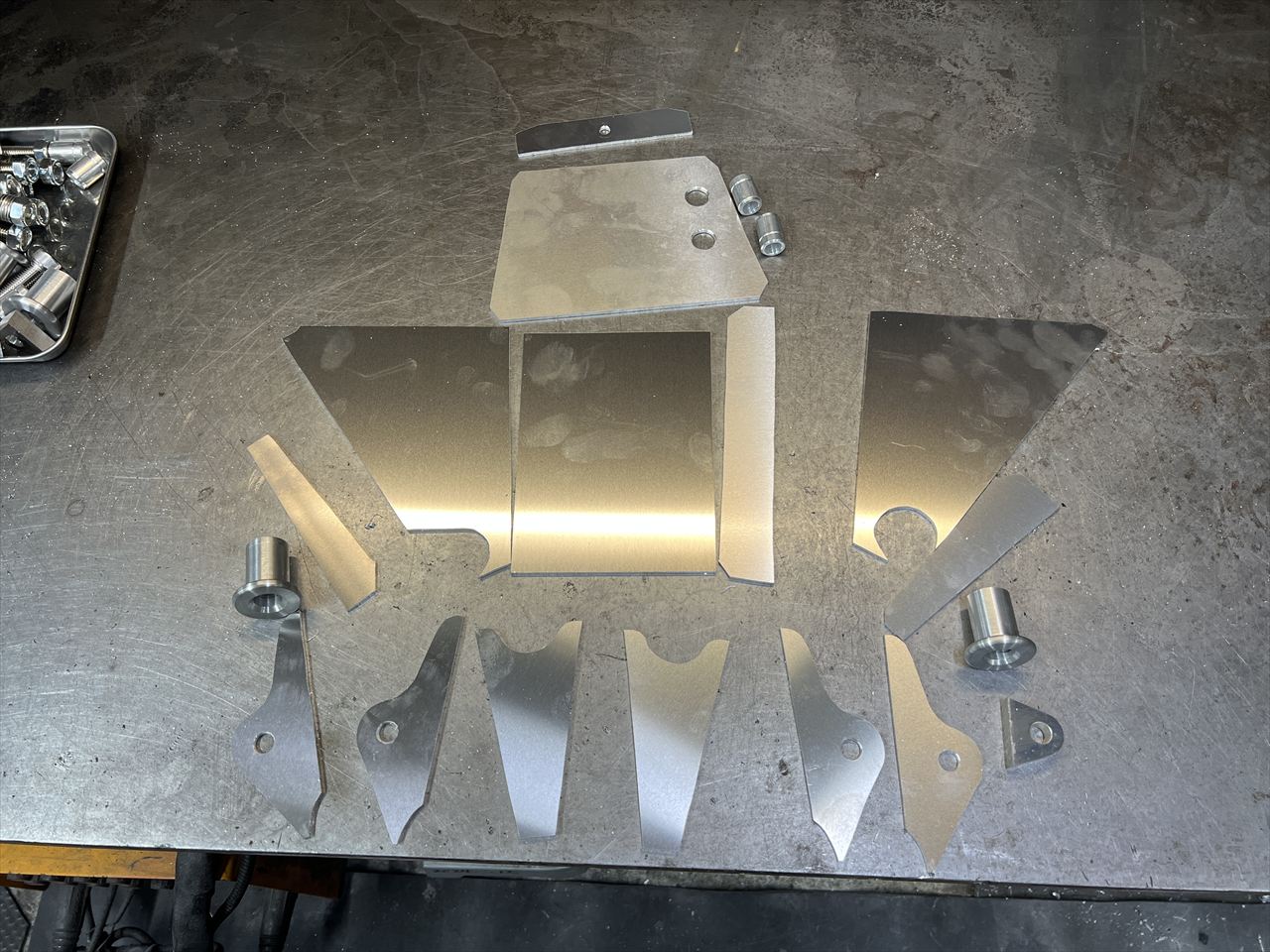 スイングアームに溶接する部品が揃いました。