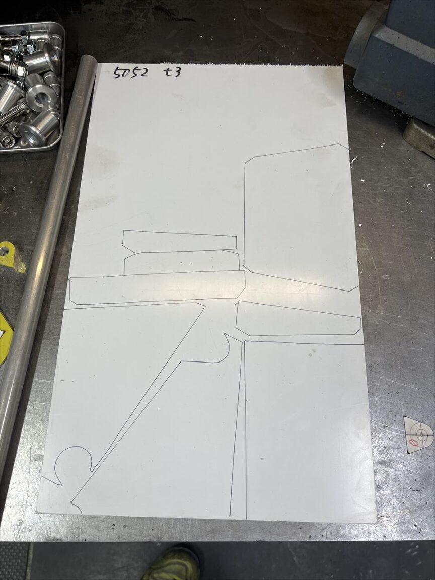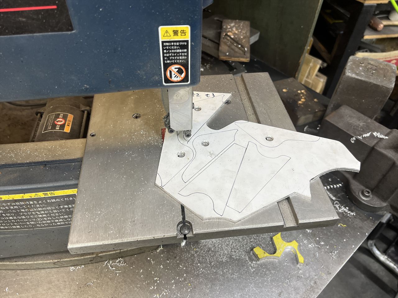 キャッチタンク部分のパネルを3ミリ厚のアルミ板から切り出します。