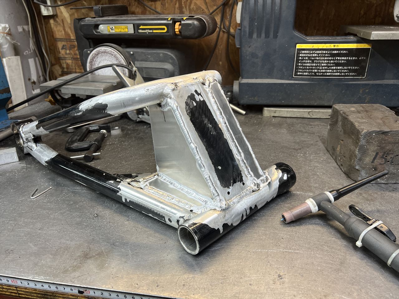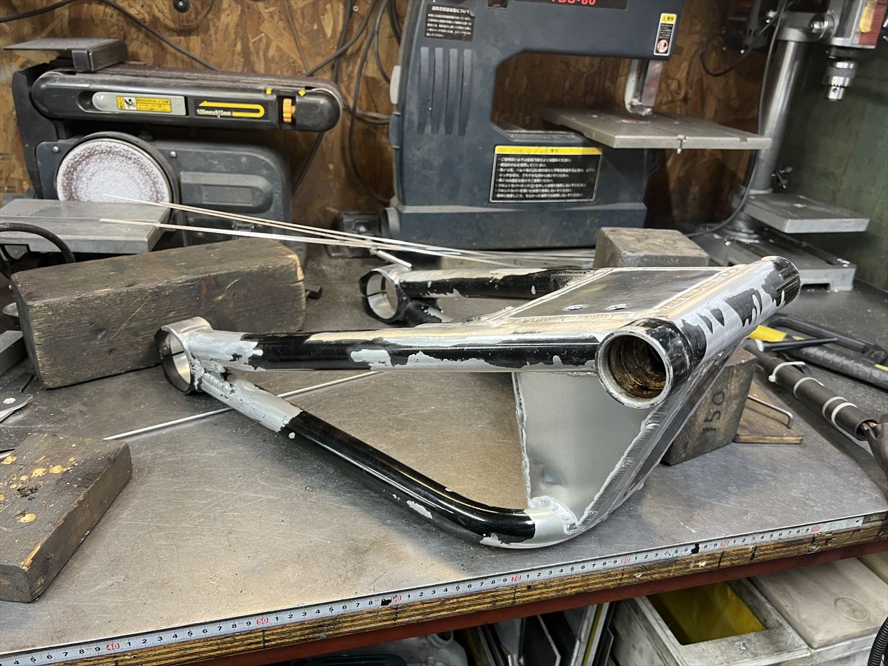 ZRX400改S1スイングアーム製作の続きです。キズなども修正し、本体の下準備は終わりました。