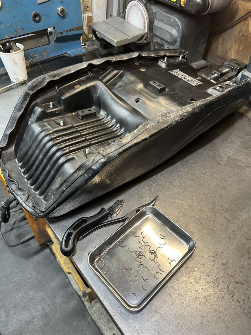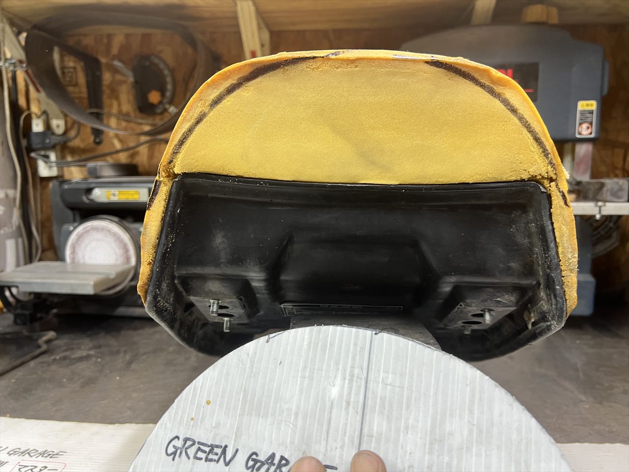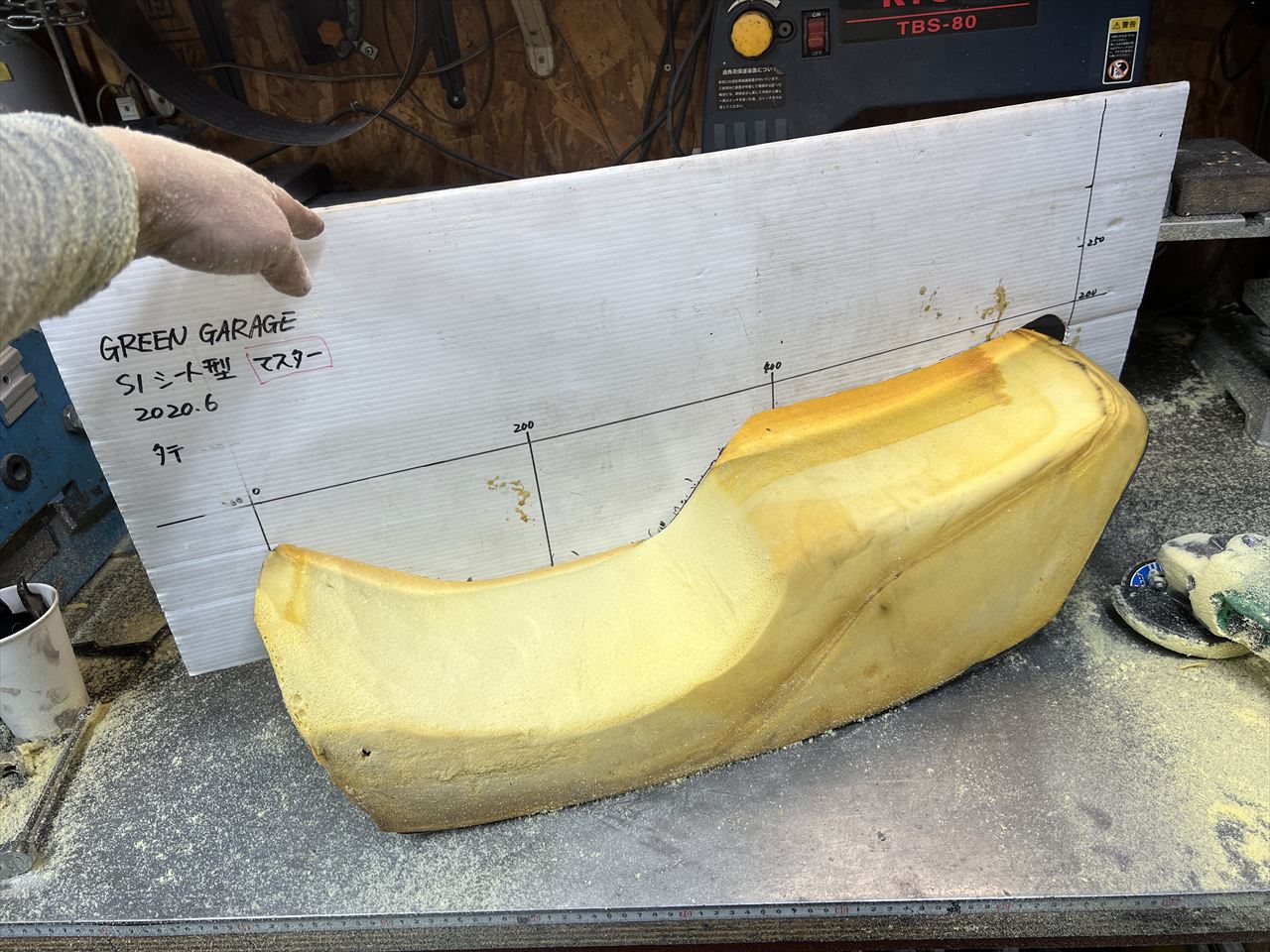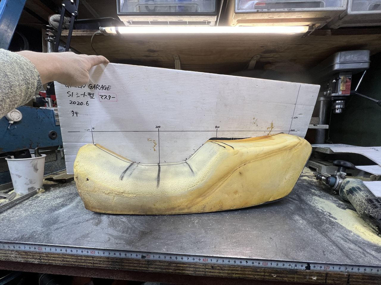 弊社で2種類あるS1シートの製作方法、今回はノーマルスポンジ加工のタイプのご依頼です。送っていただいたシートは未加工のZ1100GP純正シートのようです。