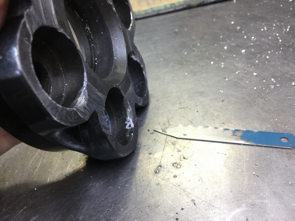 ハブダンパーハウジングの傷ついた箇所のバリを除去します。