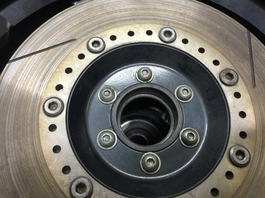 ボルト座面にはスプリングワッシャーが入っていましたが、高トルクには耐えられないので小径の平ワッシャーに変更します。