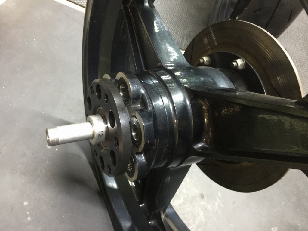 このままではベアリングに過大なプリロードが掛かってしまうので、カラーは長い物に作り変えます。
