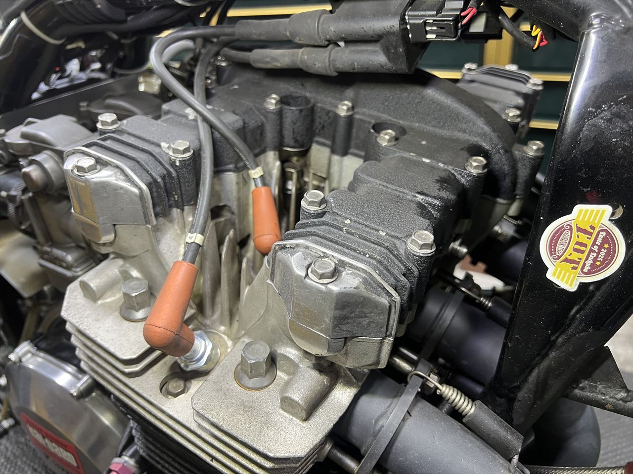 状態はこんな感じ。シリンダーとヘッドの間から漏れているようで、特にカムチェーントンネル辺りが一番濡れています。