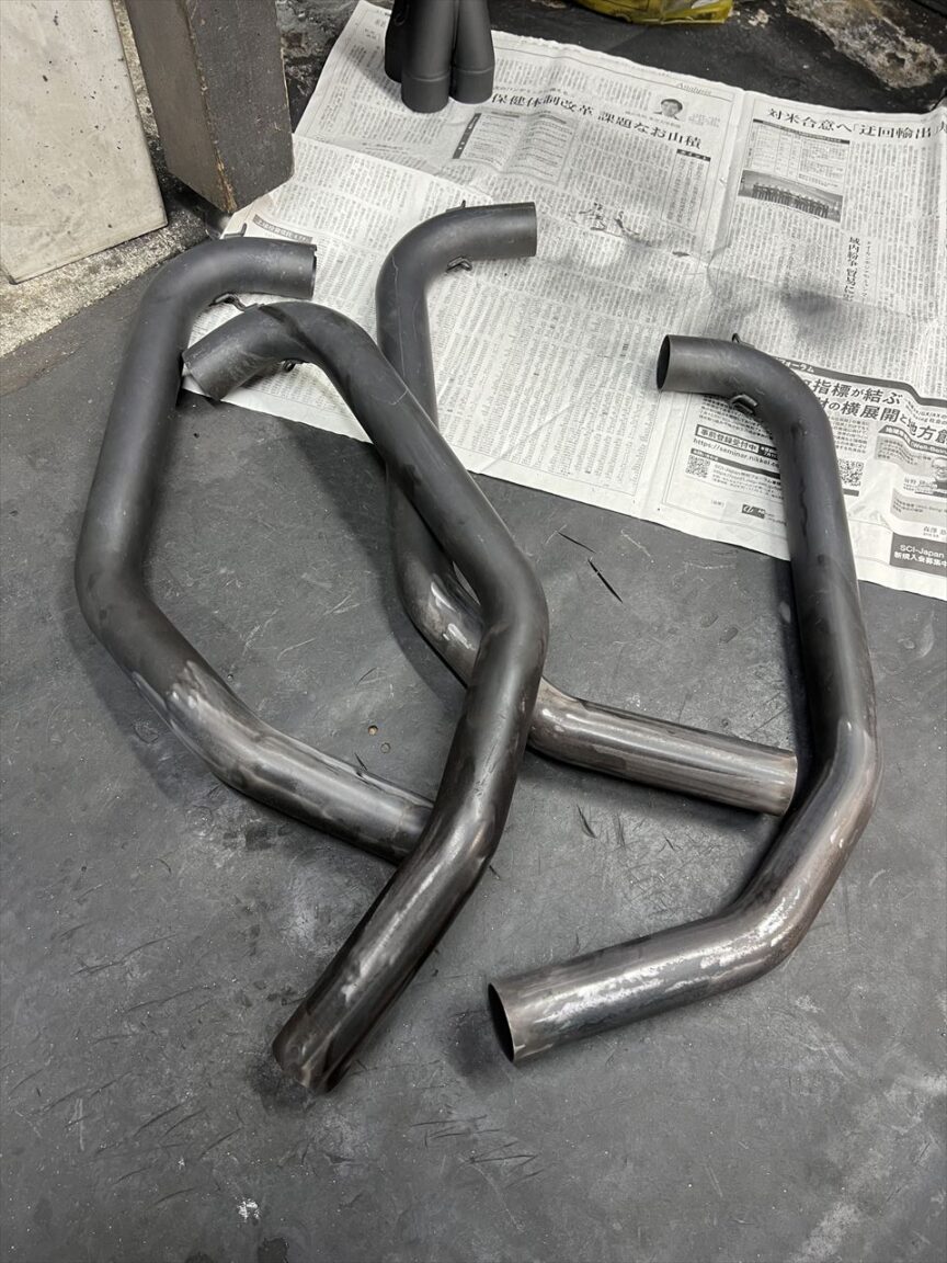 マフラーを外します。集合部辺りがだいぶ腐食してきましたね。