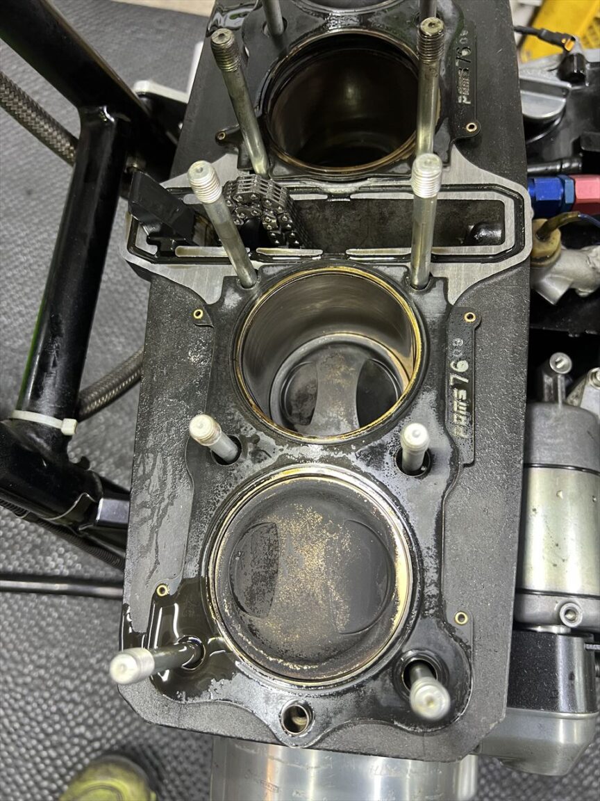 シリンダーは2020年に製作したICBMのアルミシリンダーです。それから約6年、途中ケガで1年くらい走らなかったので実質5年、10000rpmまで常用してサーキットを走り込んでこの状態です。多少のスカッフはありますが、まだまだ使える状態です。