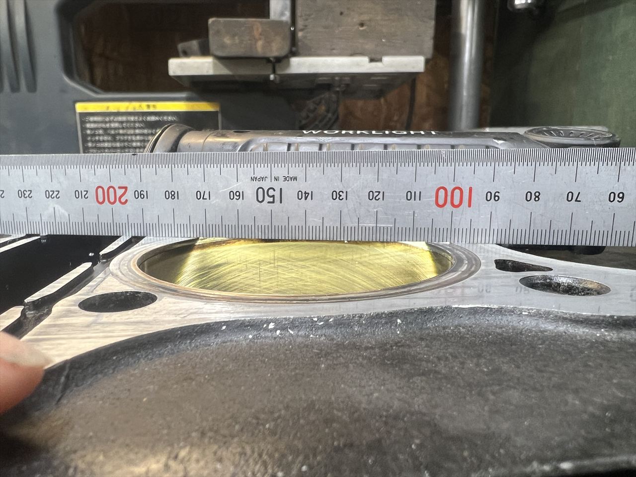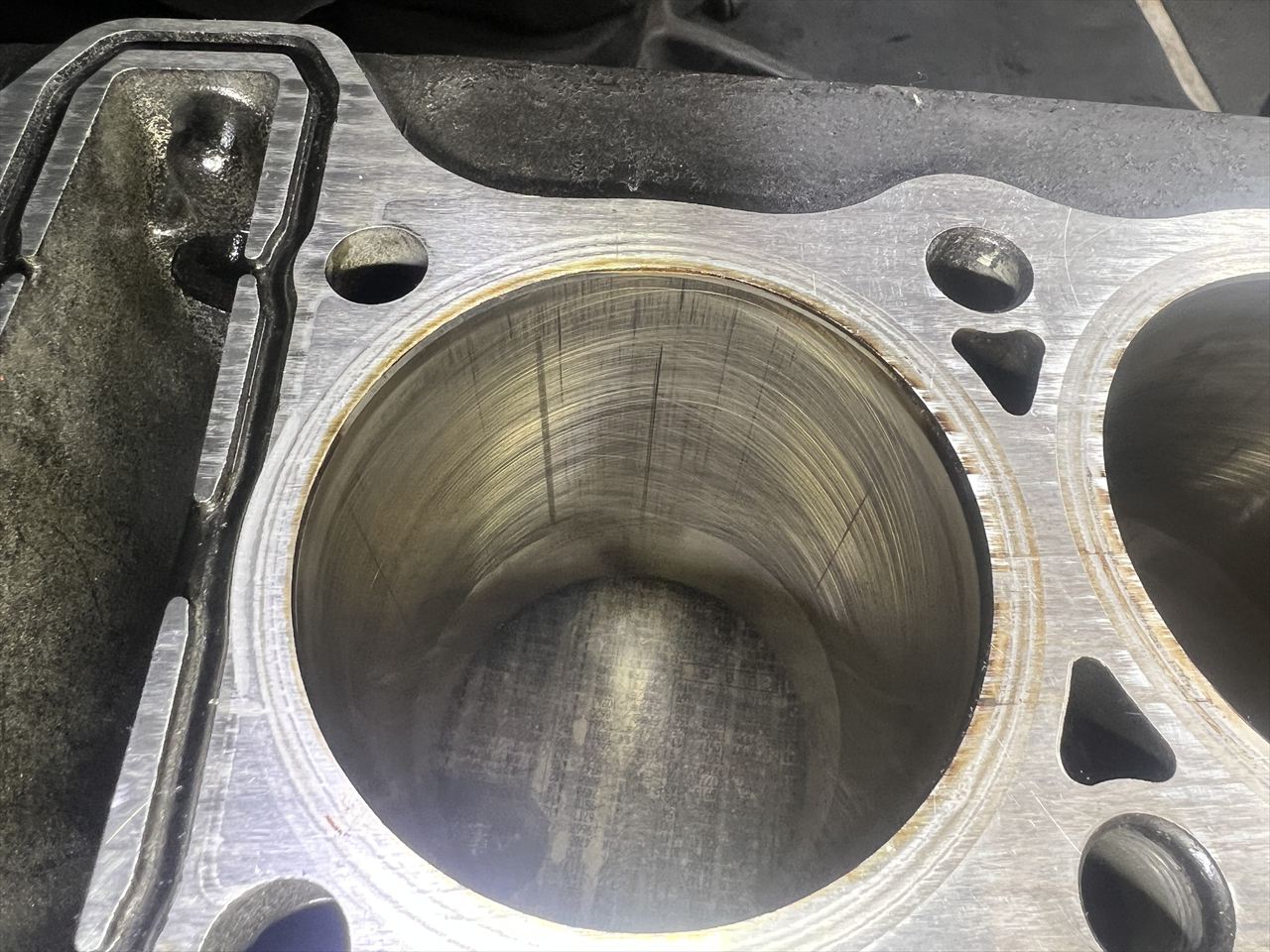 拡大するとこんな感じ。指で触ると直ぐに段差があるのがわかります。この3番シリンダーは2022年にバルブ折損でエンジンブローした際にスリーブ交換したところでした。