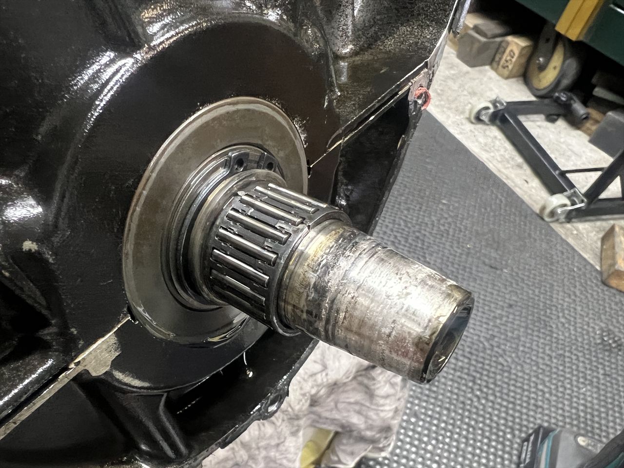 ロアーケースを点検します。ベアリングハウジングは、若干のたたき痕はあるものの、概ね良好です。