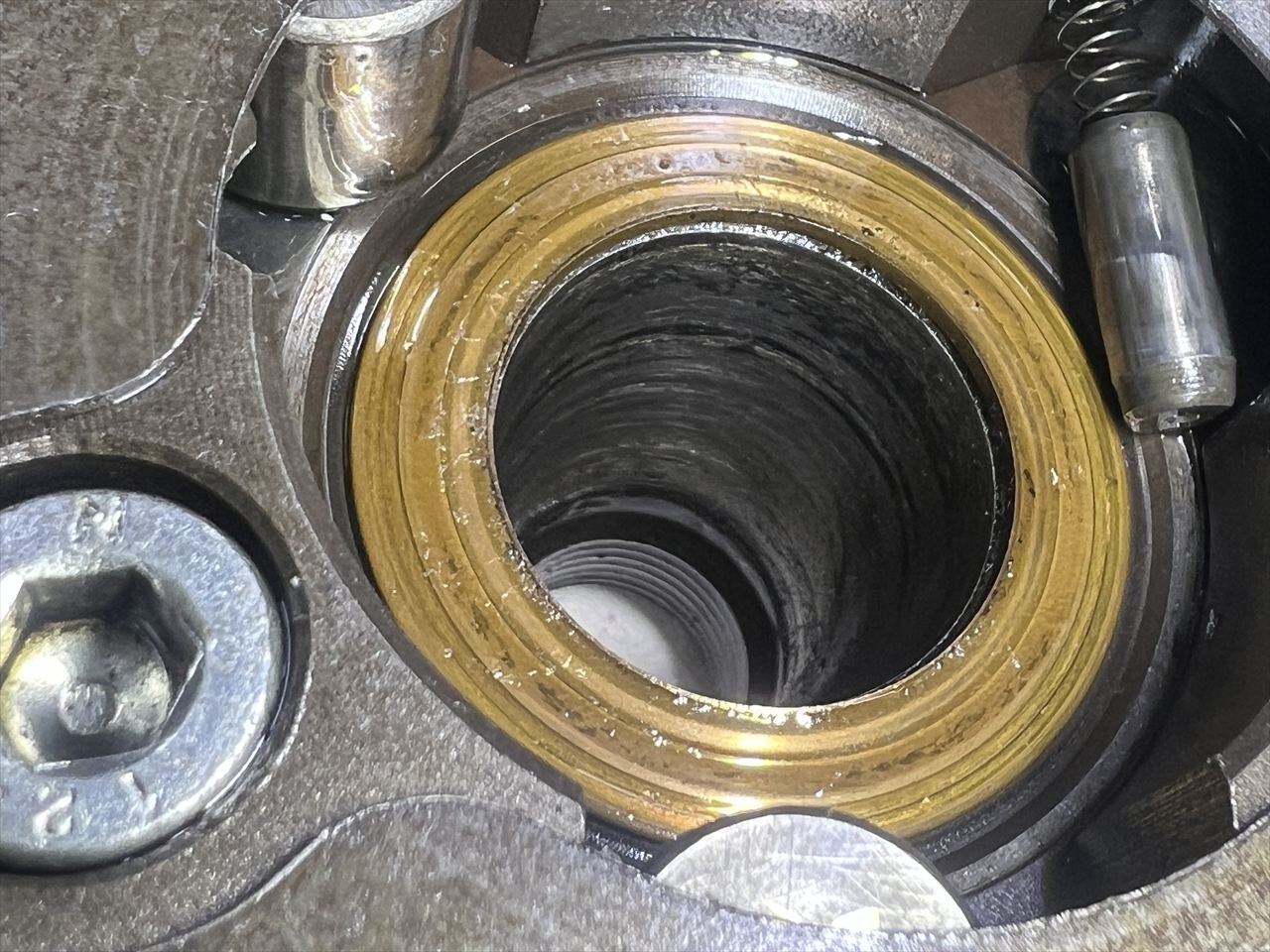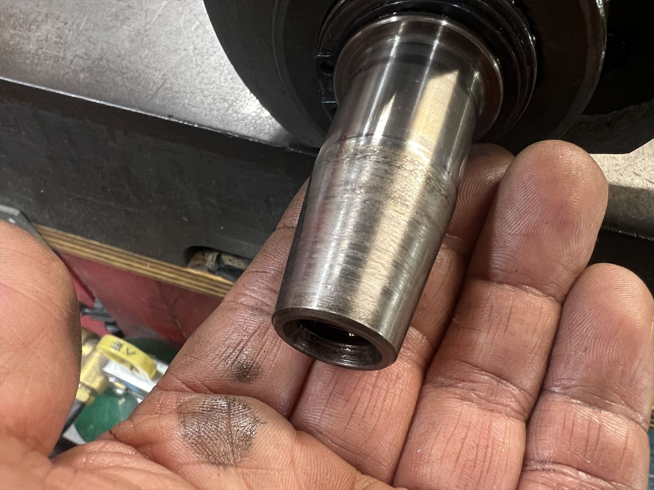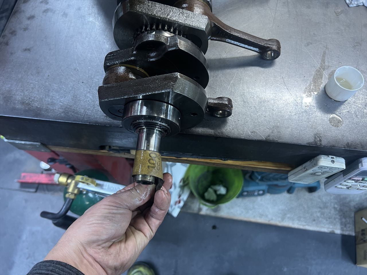 前回組立時にキズがある状態でロック剤を併用したものと思われます。あまりキズが酷いようだとクランク交換も想定されます。