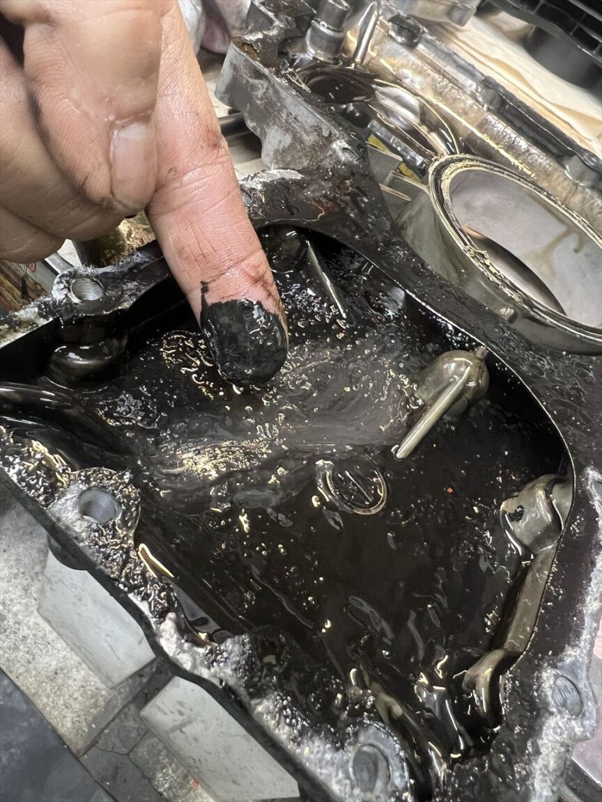 特に大きな異物は無いようです。一度このように溜まったスラッジは、オイル交換だけではなかなか取り除くことはできないものです。