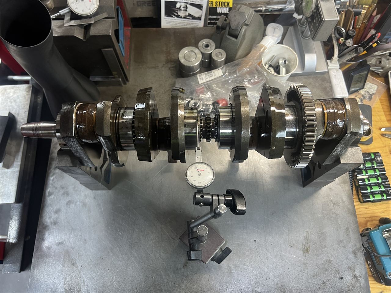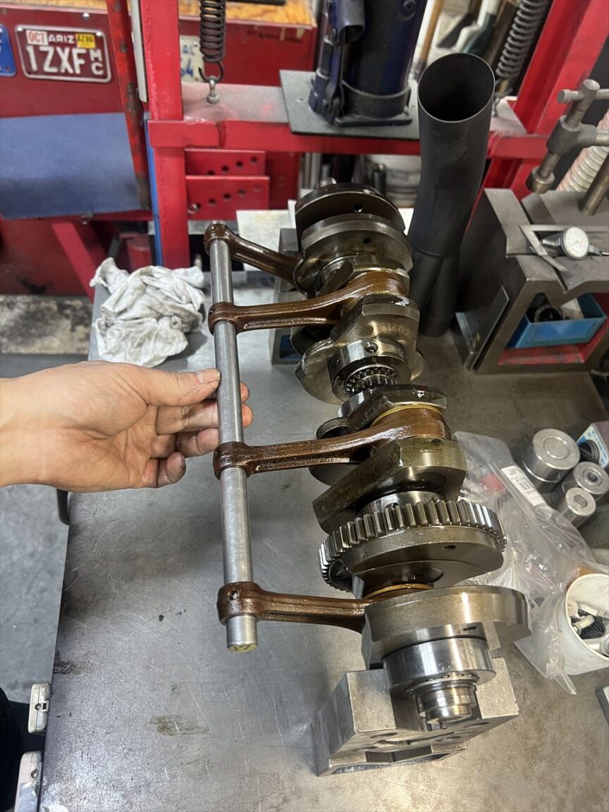 点検棒はスルっと通るので、位相ズレは無いようです。ズレていることが多いJ系の中では優秀なクランクですね。
