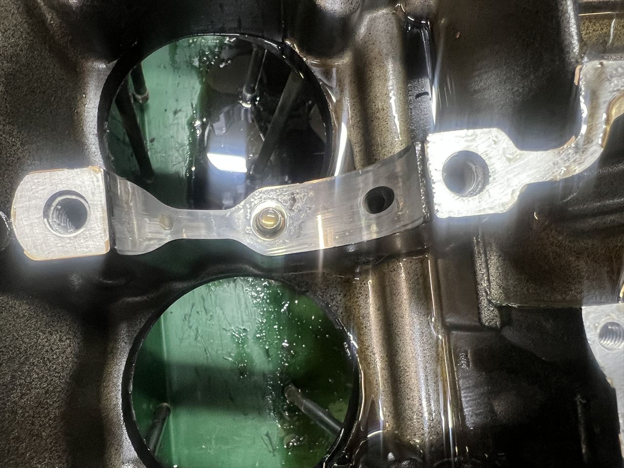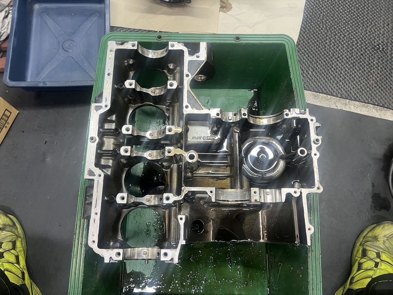 転倒時にクラックが入りやすい5番クランクホルダーのノックピン周りですが、このケースは大丈夫です。その他も特に問題は無いようです。