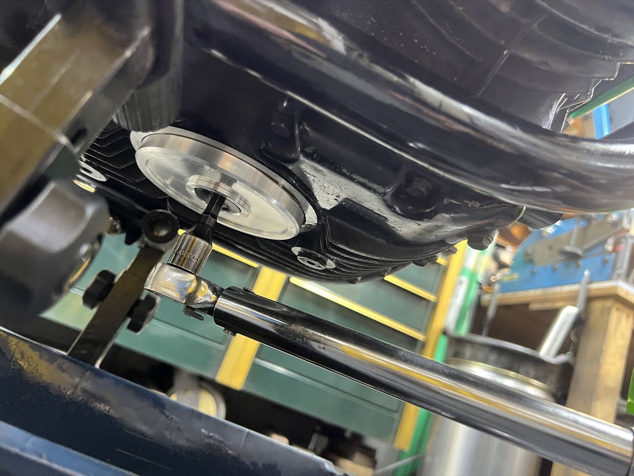 フィルターを交換し、復元します。6角穴のドレンボルトなどは、固着すると6角穴を舐めやすいです。締め過ぎて固着するのを防止するため、締め付けはトルクレンチでのトルク管理が必須です。