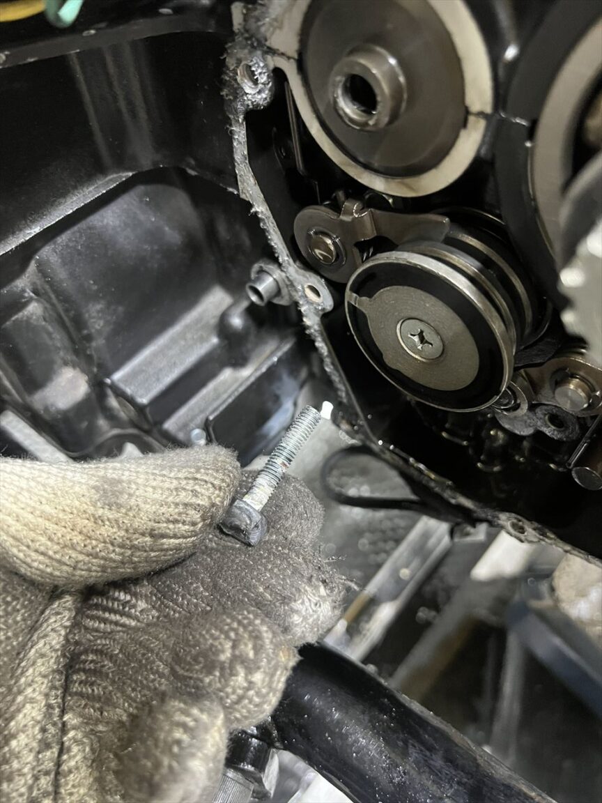 ミッションカバー前側のボルト数本は、トラブった場合奥まっているので修理が非常に困難になります。くれぐれもご注意を。