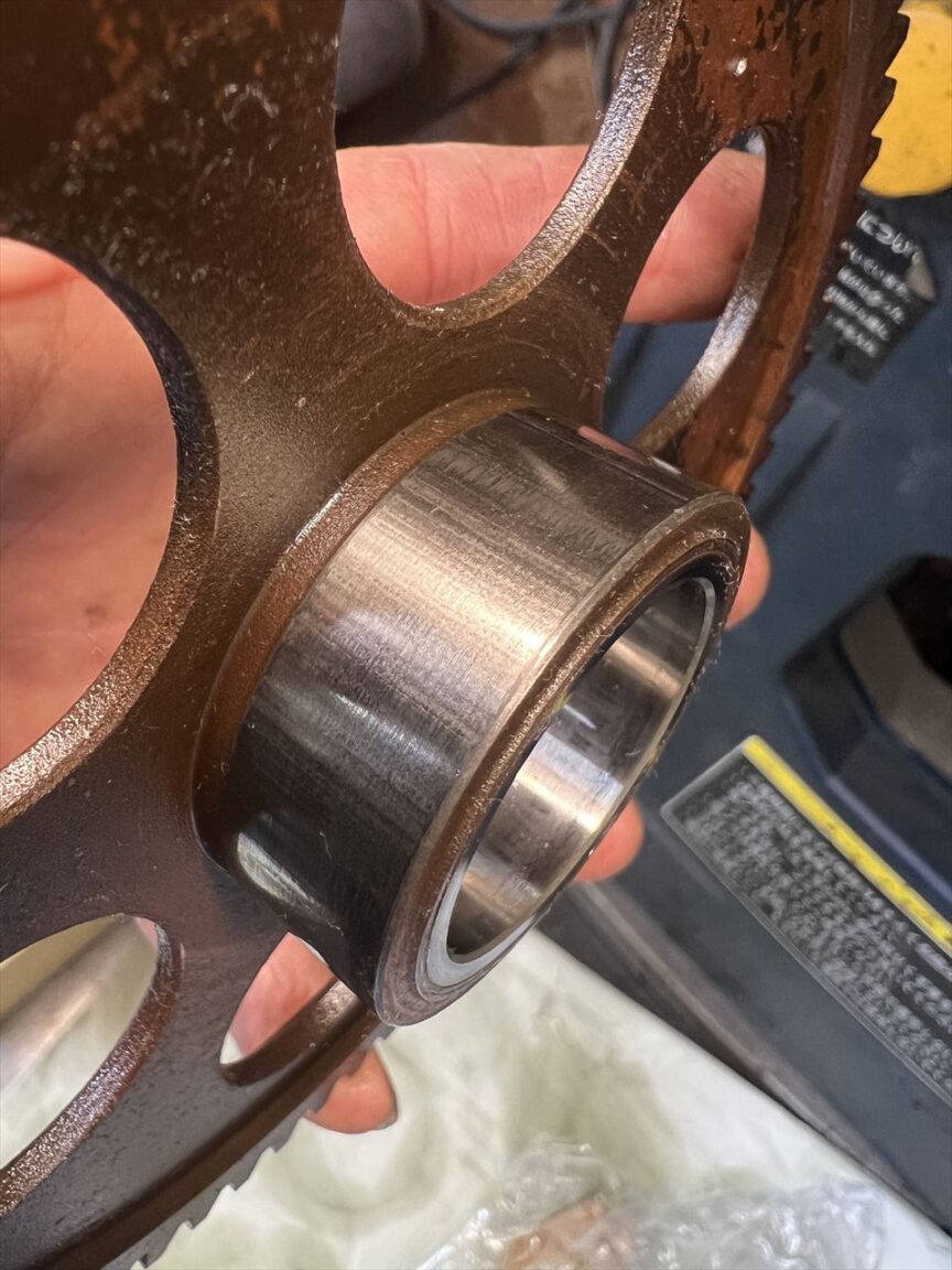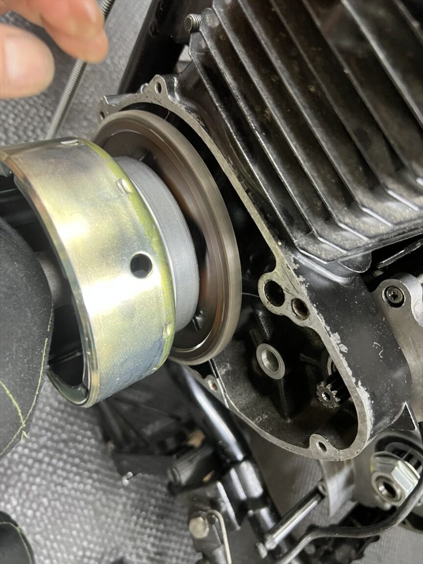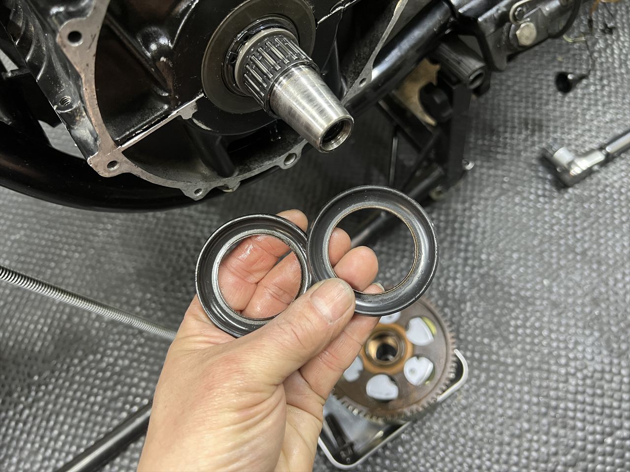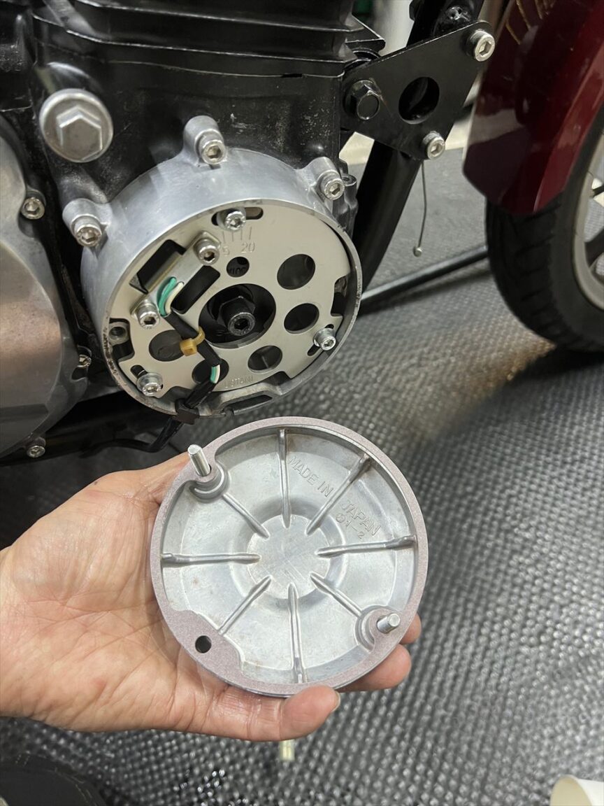 クランク側のキズの修正は困難ですが、キズは比較的軽微だったのでジェネレーターローター側だけ新品交換します。左がデッドストックの純正新品です。