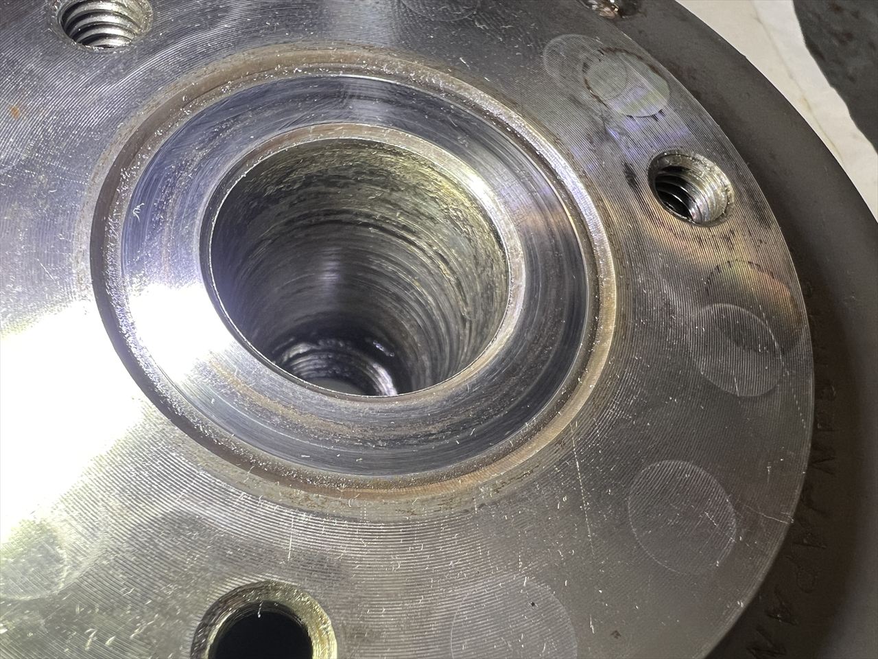 ところがこのネジ穴は何か引っかかってボルトが入りません。内部にはヘリサートが入っていましたが、口元コイルが少し浮いていました。タップを立ててコイルを整列させます。