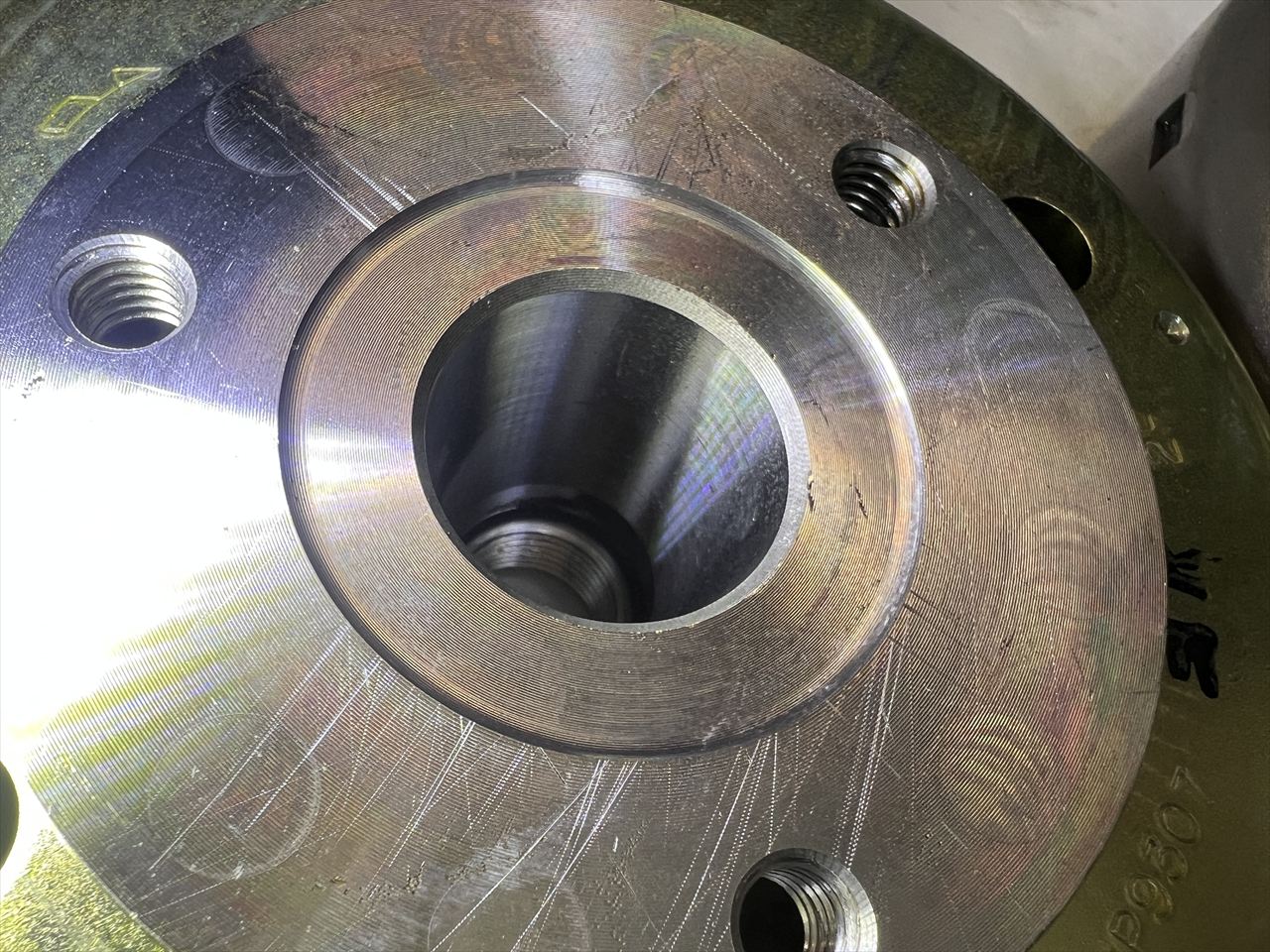 新品のテーパー部はこちら。きれいなテーパー面同士の接合なら、十分な摩擦力を得られるものです。
