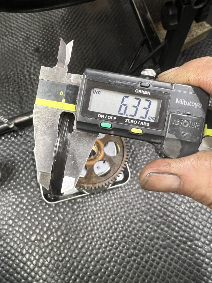 カムを取り付けたらバルブクリアランスを調整します。今回シートカットしているので、シムの厚さは全体的に概ね0.2ミリほど薄くなりました。