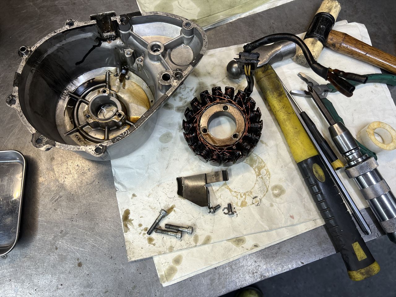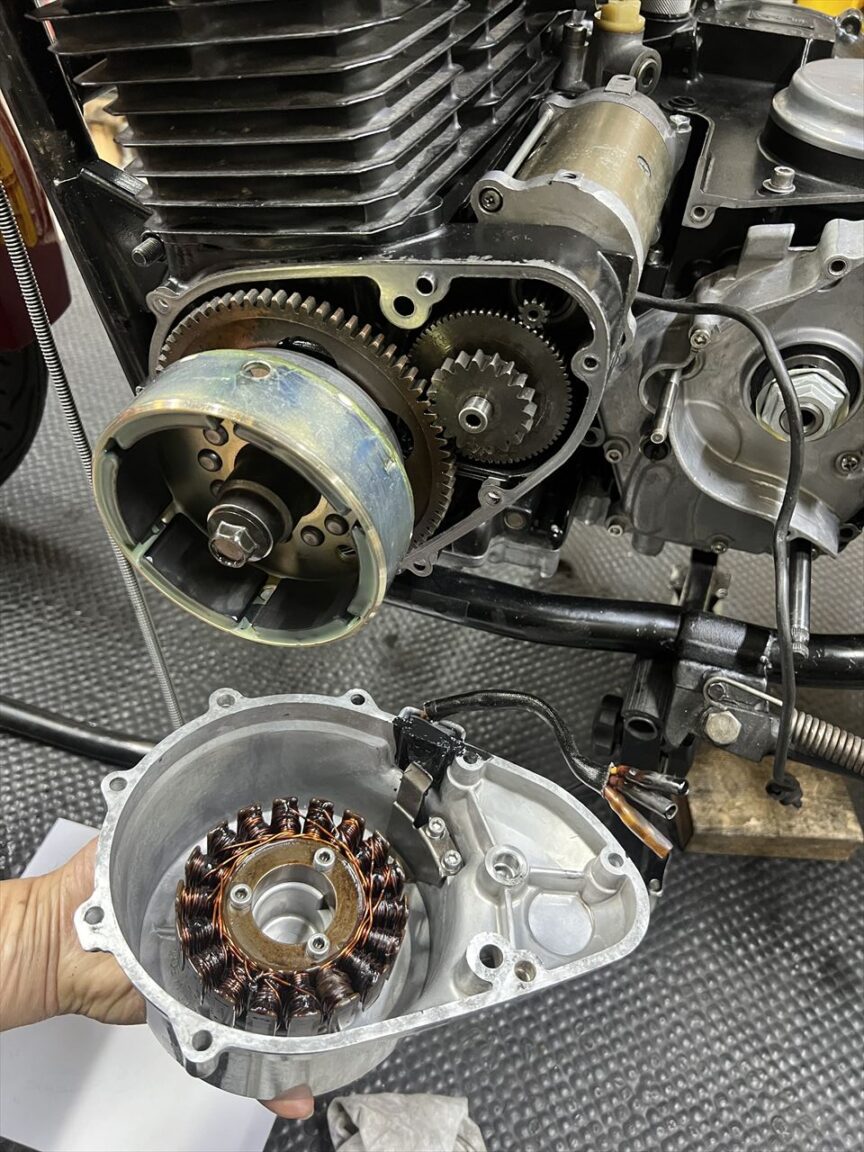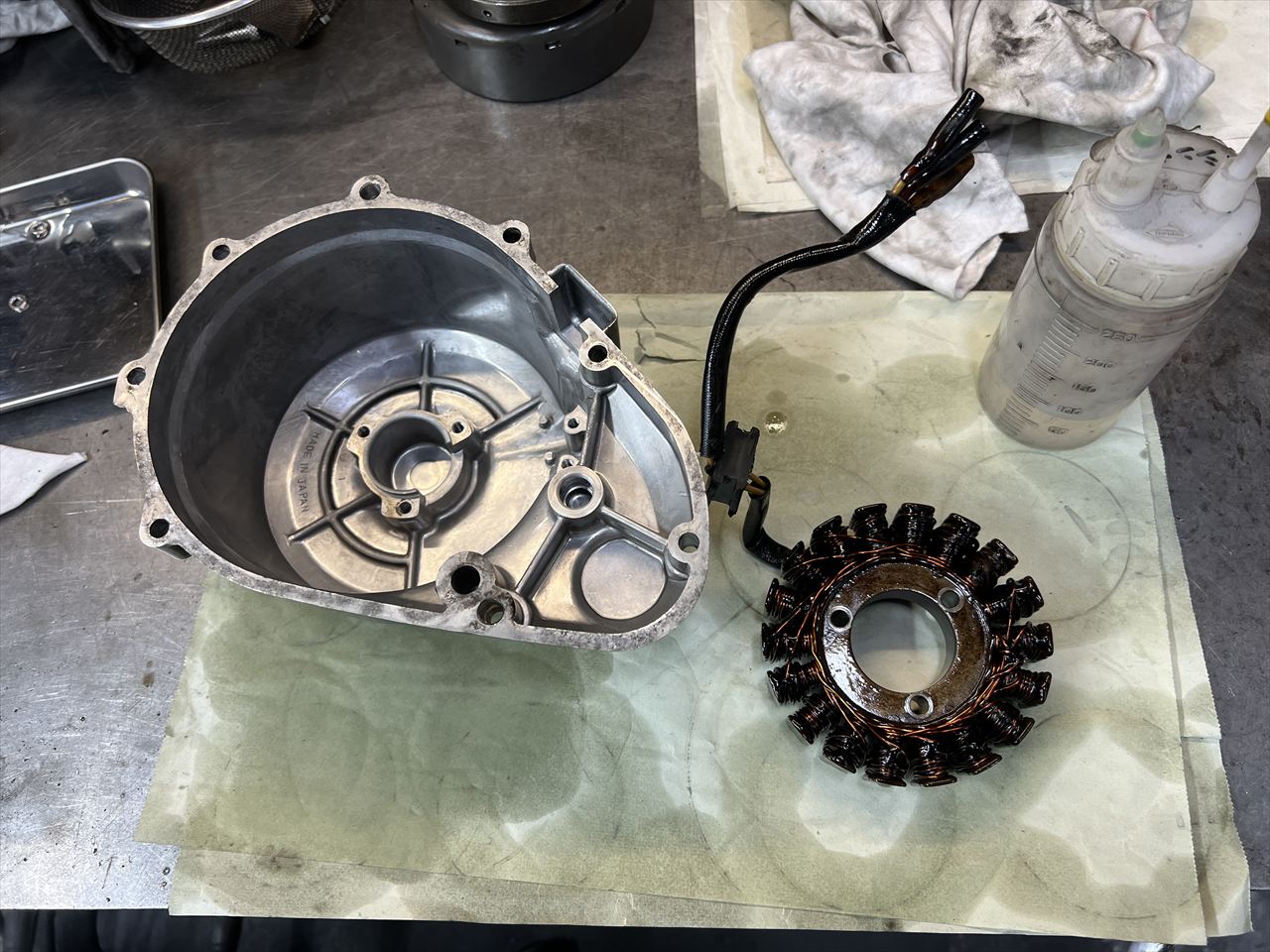 ジェネレーターカバー内の部品も一旦分解して点検・洗浄します。