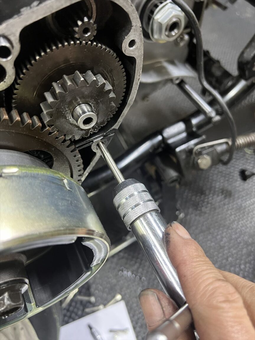 締め付けは規定トルクでしっかりと。分解歴のあるエンジンでは、ここの緩みやボルトの折損が散見されるので要注意。