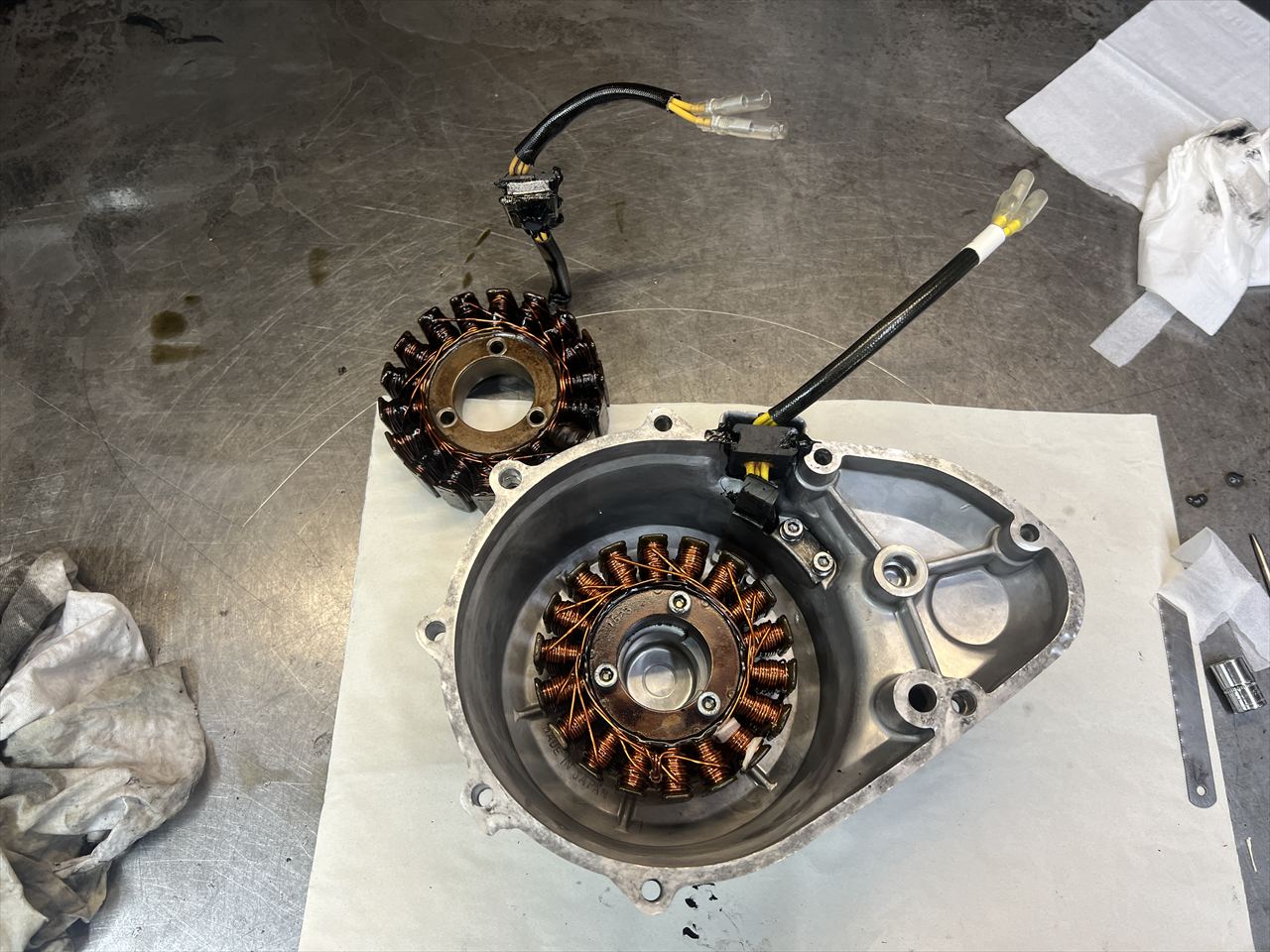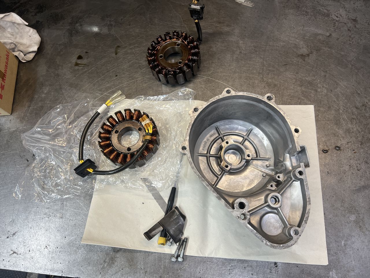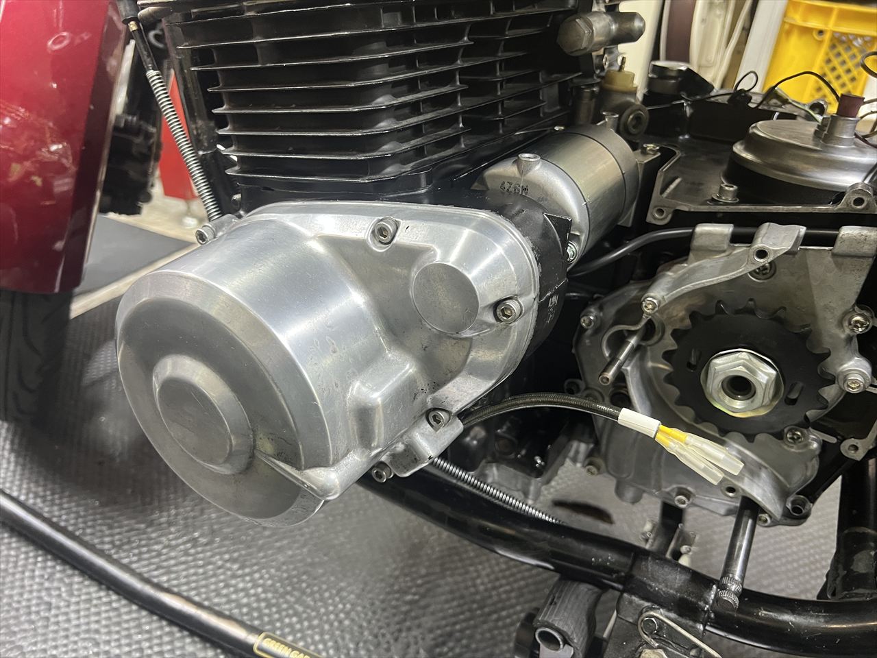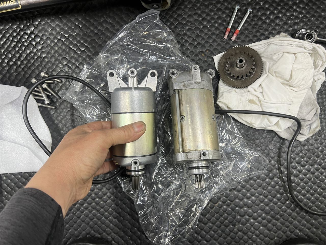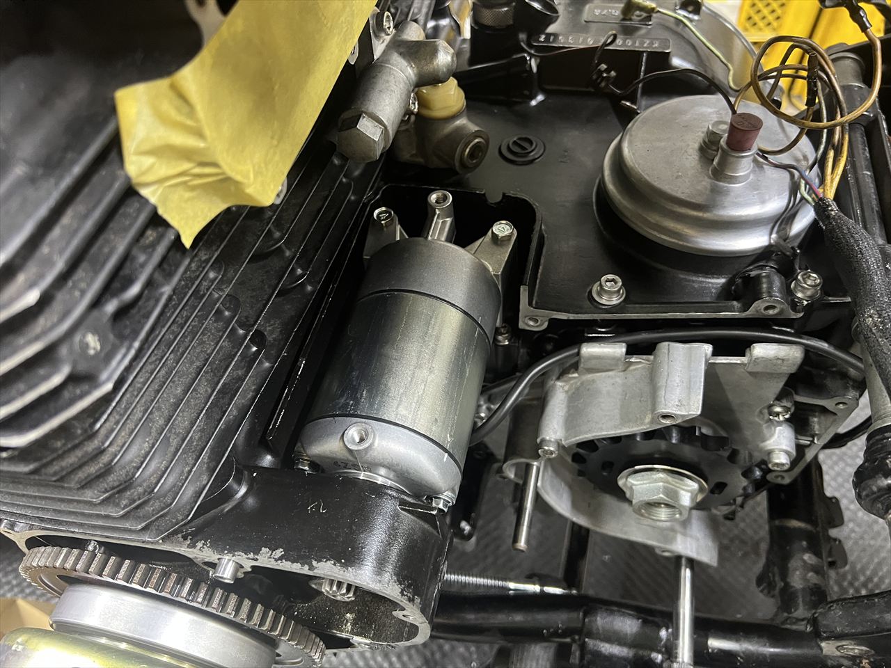 続いて電装系更新のためメインハーネスなどを外します。右のハンドルスイッチとメインハーネスのカプラーはかなり溶けていますね。更新はいいタイミングでしたね。