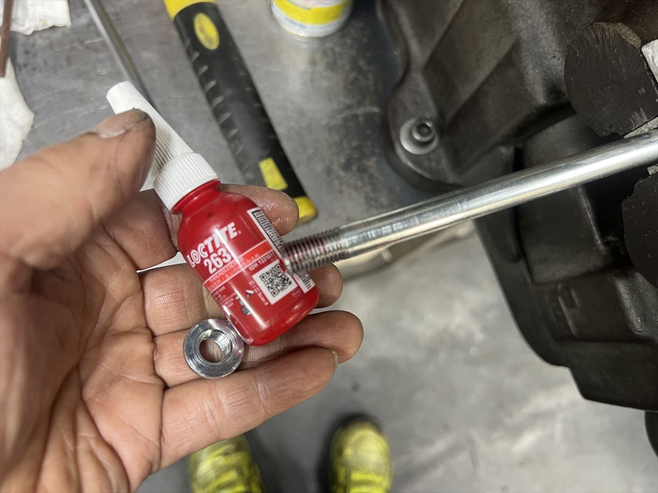 マウントボルトは両端ネジでナットはセルフロックです。両側のセルフロックを効かせるため、片側のナットはロックタイトで固定しておきます。