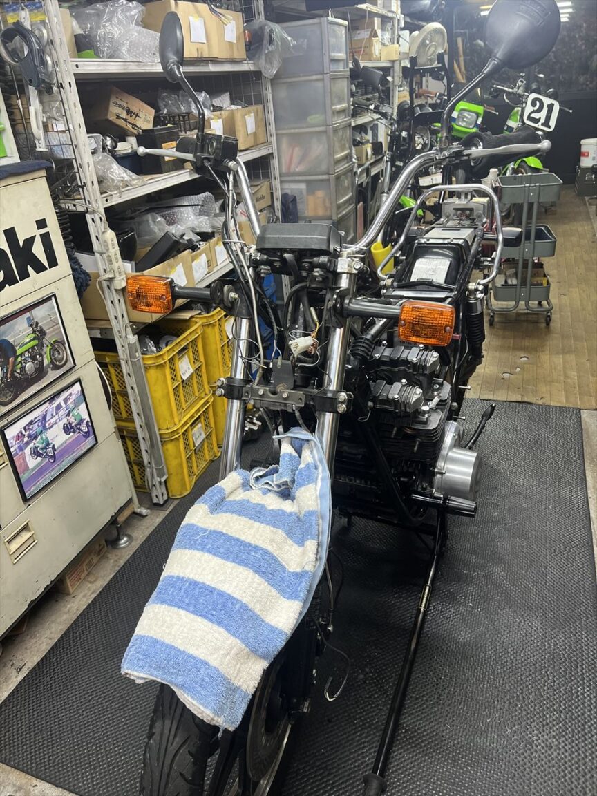 続いてフロント周りもフォークオーバーホールやホイールベアリング交換をするので分解します。