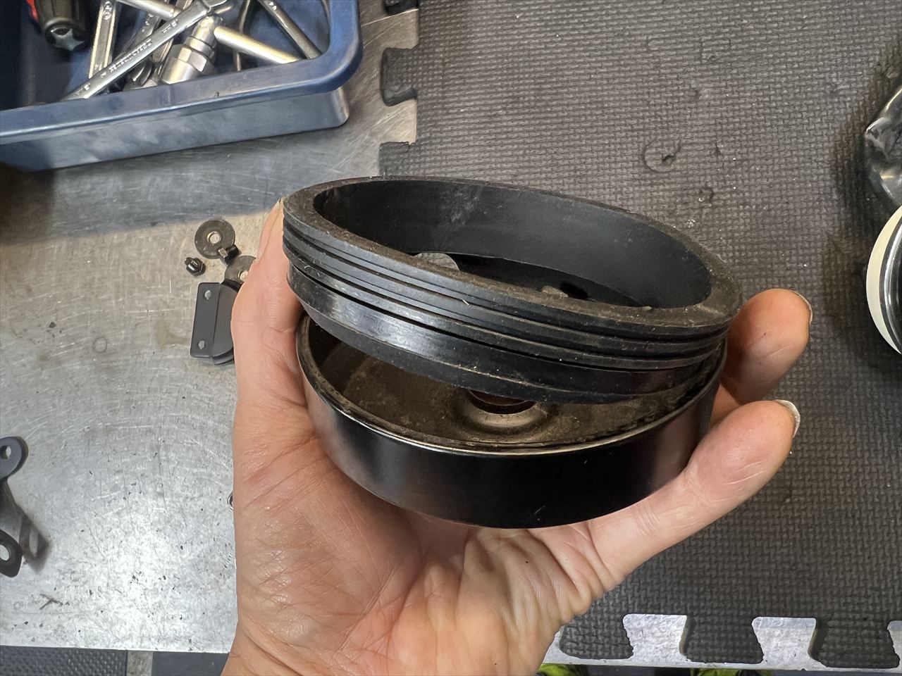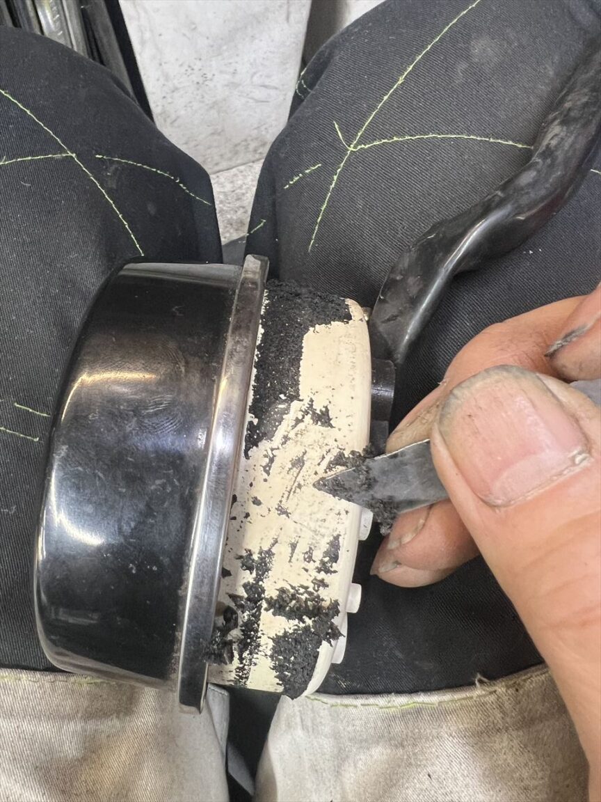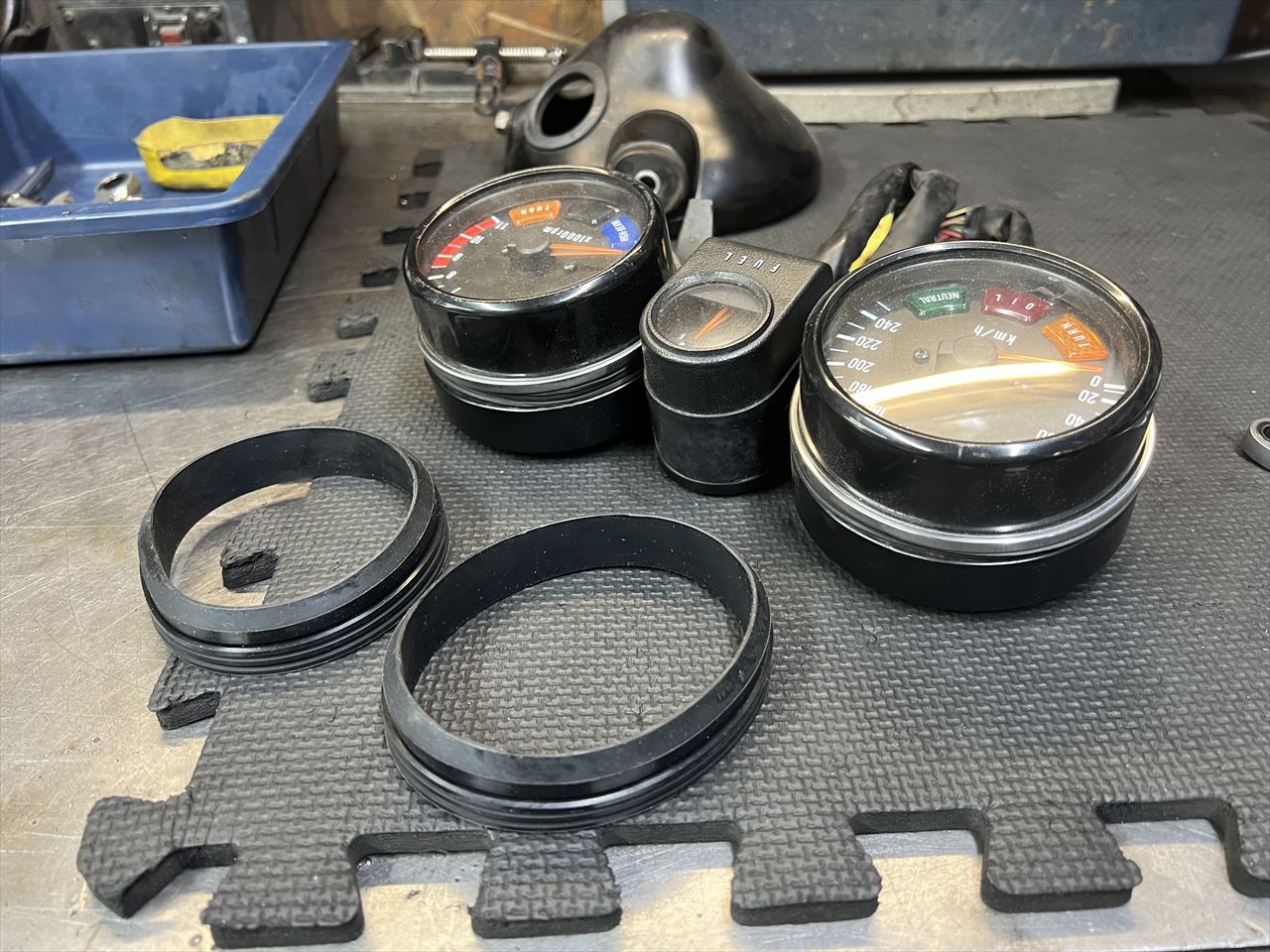 メーターは劣化したダンパーを交換します。手前にあるのが社外品のゴム製ダンパーです。