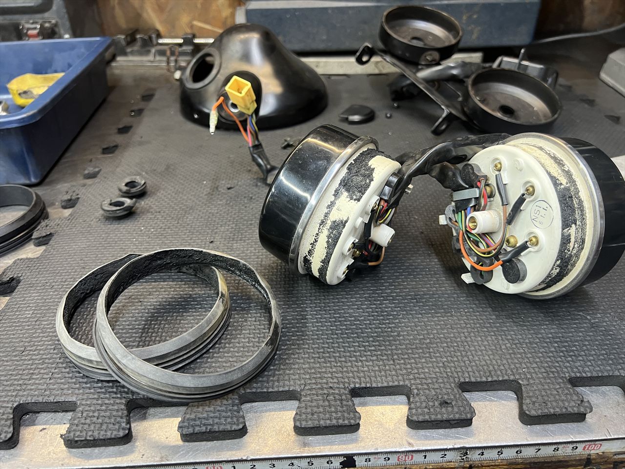 メーターステーもかなり苦労の痕が伺えます。こちらも社外の純正形状新品に交換しましょう。