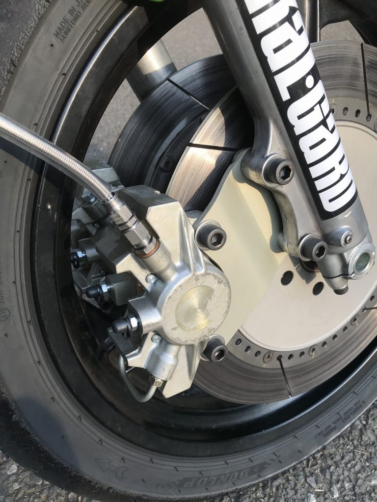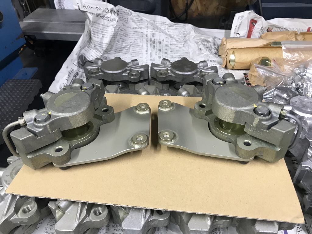 パッドは当時のトキコ製カワサキレース用が適合します。