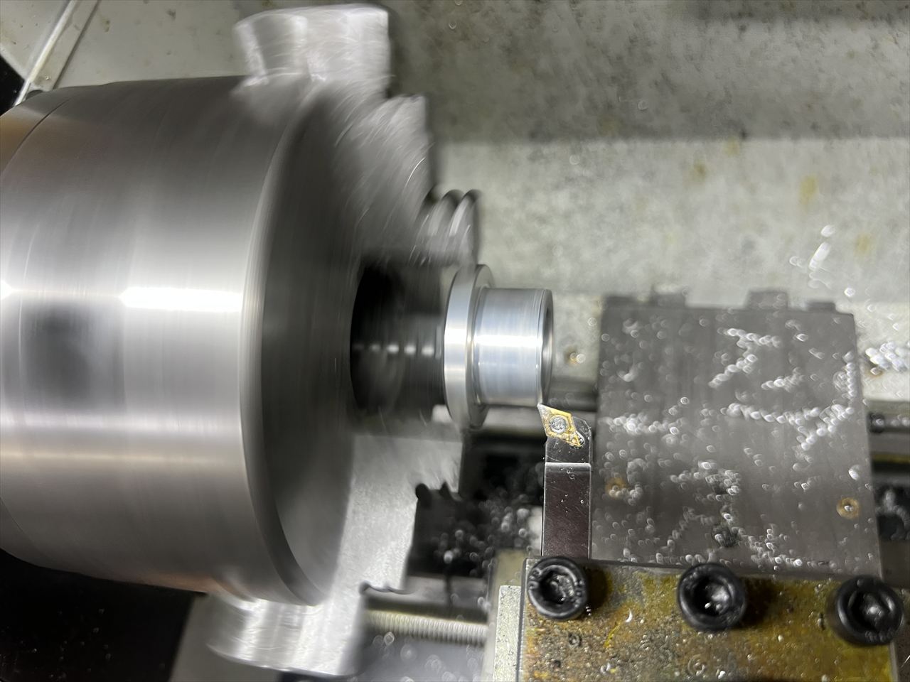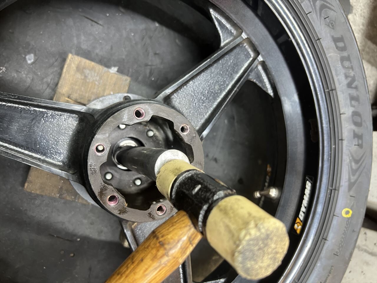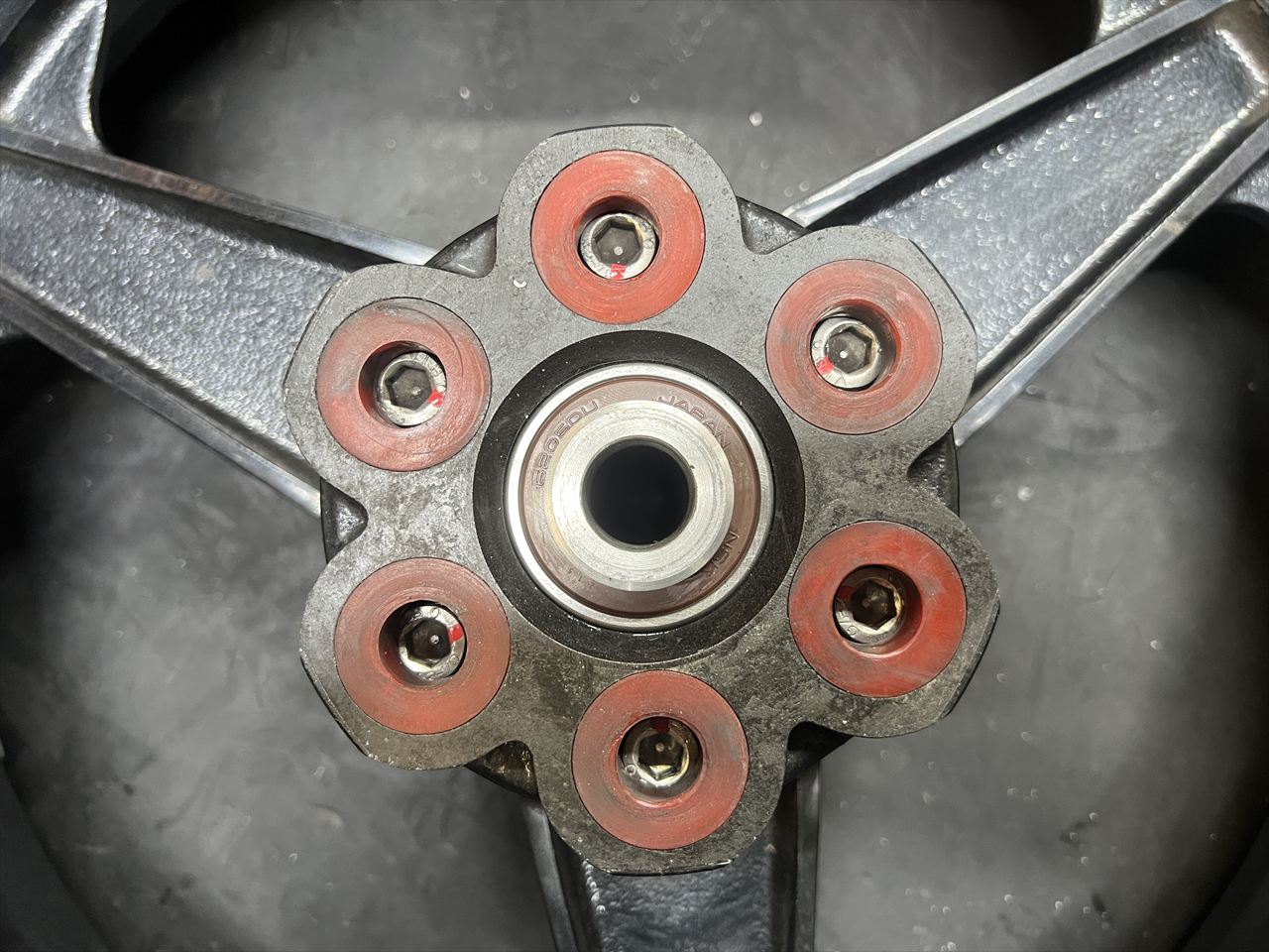 圧入部分の外径を0.05ミリほど落とし隙間ばめとします。その他のホイールカラーも圧入仕様だったので、整備性を上げるため全て隙間ばめに変更します。