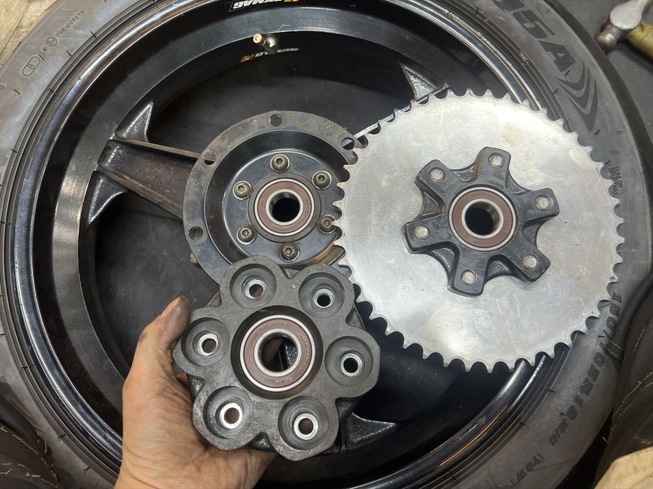 ベアリングが外れました。スプロケキャリアやハブダンパー、ダンパーハウジングなどは特に問題無いので継続使用します。