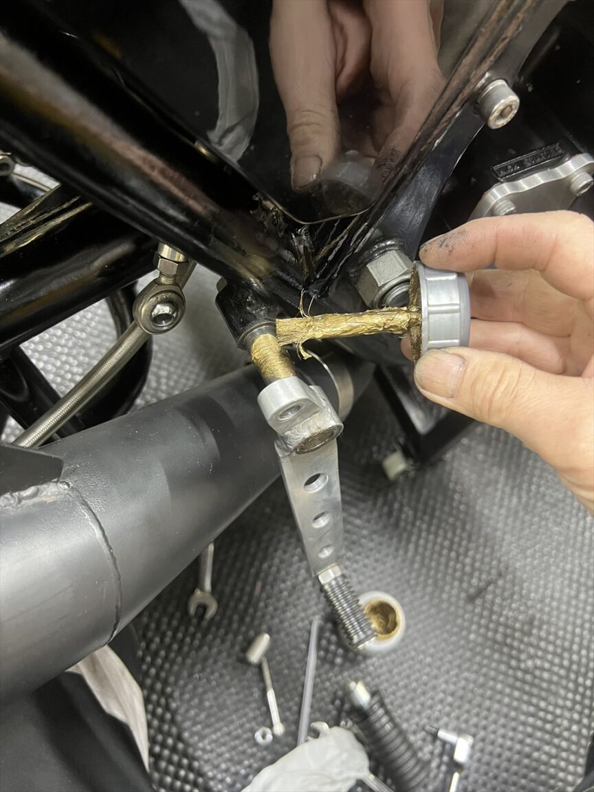 バックステップペグのゴムが擦れて中の金属が見えてきました。これはペグを回転させて上下を入れ替えればもう一度使えます。