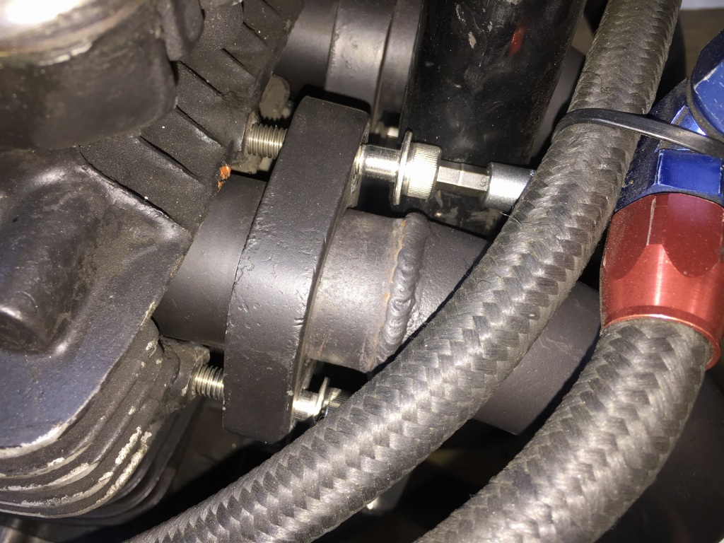 左はかなり飛び出しているので、スタッドボルトの左右振り分けが悪いようです。