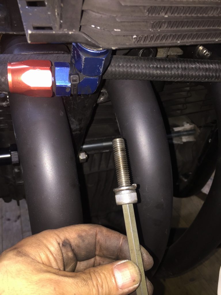 エキパイを外します。スタッドボルトが傷んでボルトに変更したとのこと。