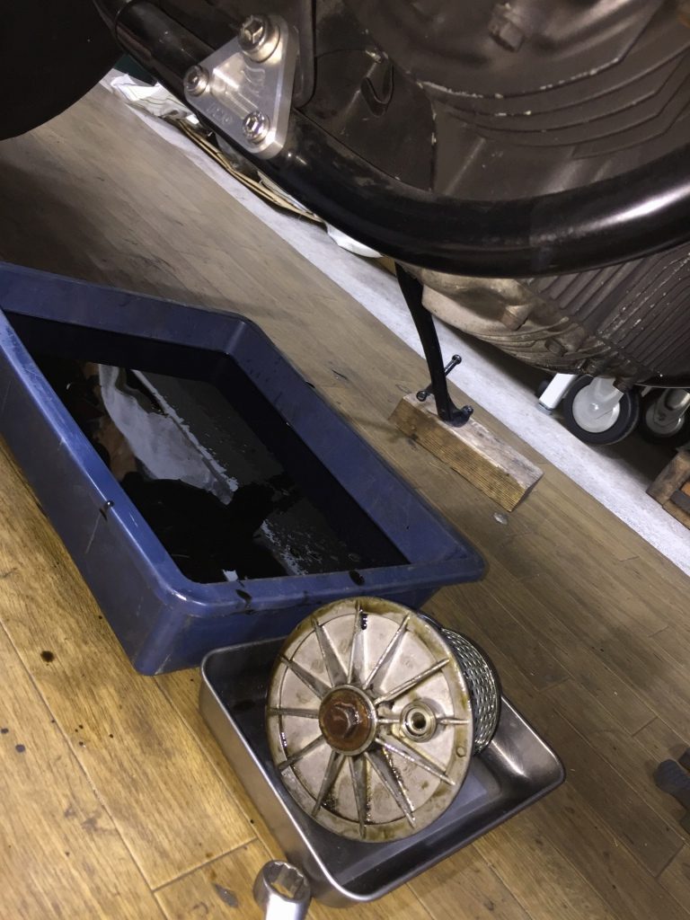 エンジンを下ろす前にオイルを抜きます。