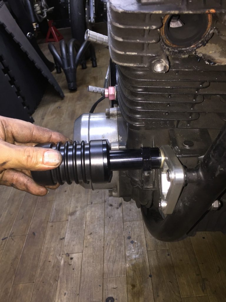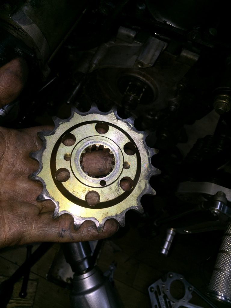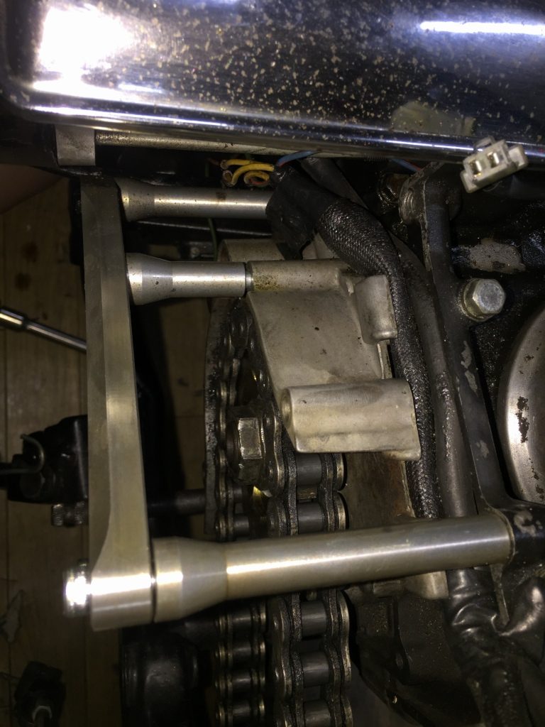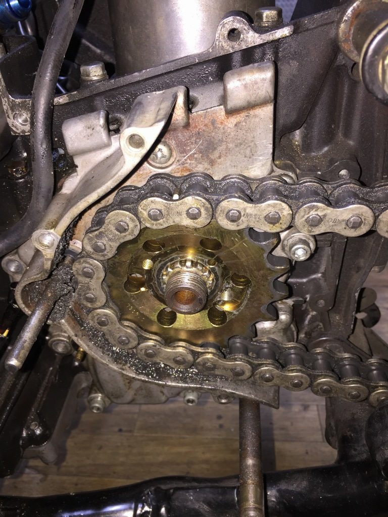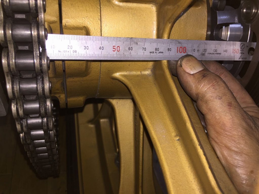 スプロケットを外します。オフセットスプロケが付いていますが、チェーンラインは合っているのでしょうか。