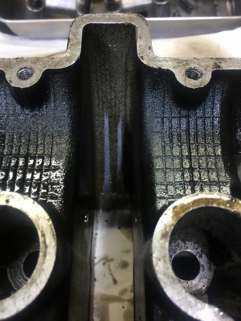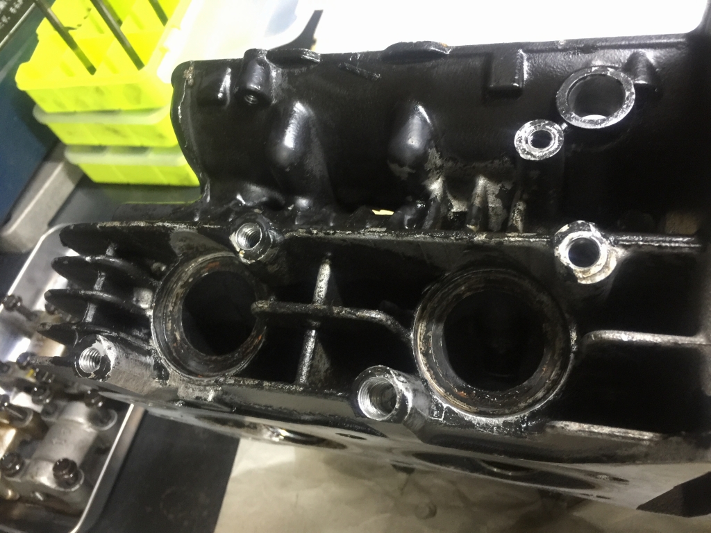 カムチェーントンネルの一部には、緩んだカムチェーンが接触して削れた痕があります。