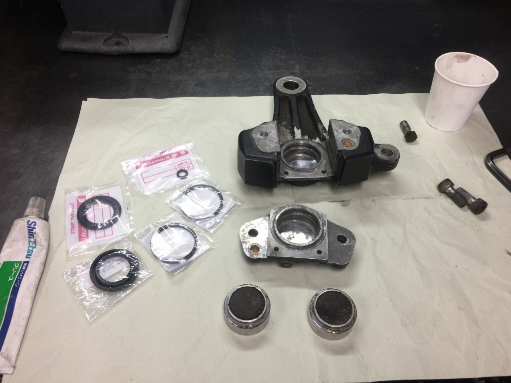 リヤキャリパーのシール類が入荷したので組み付けます。